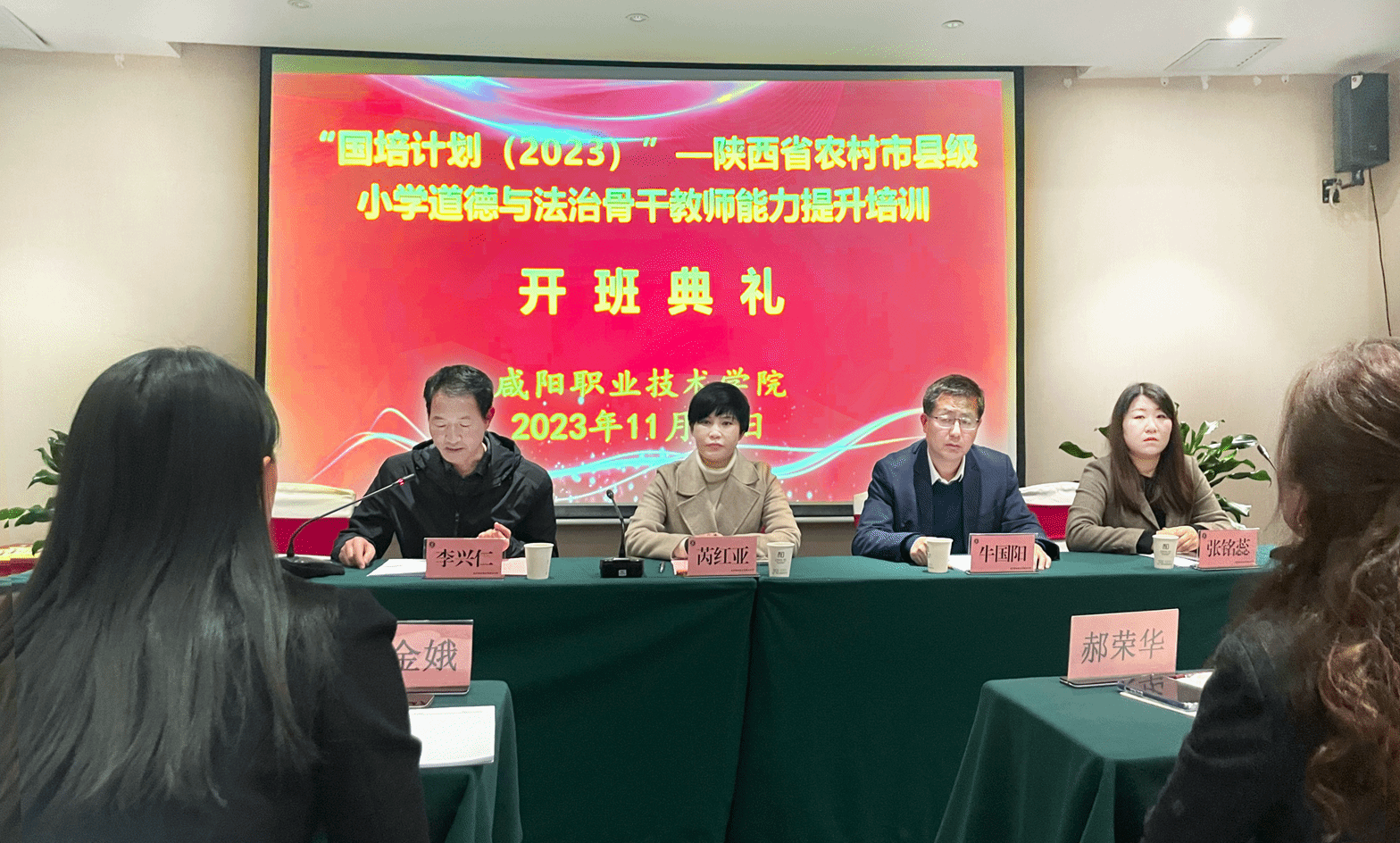 11月16日上午,由咸阳职院承办的“国培计划(2023)”—陕西省农村市县级小学道德与法治骨干教师能力提升培训在长安国际酒店开班。咸阳职院副院长芮红亚、继续教育学院负责人、培训管理团队及全体参训学员参加了开班典礼。