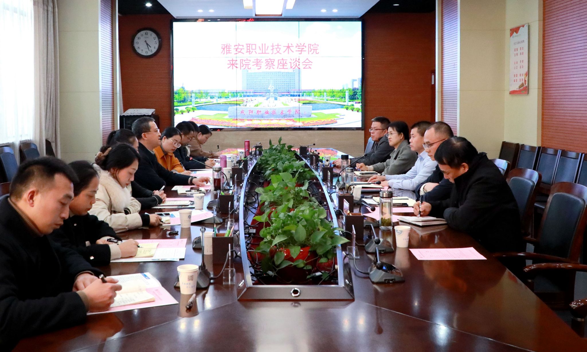 黄诚对咸阳职院在发展建设中取得的标志性成果表示高度赞赏,对咸阳职院长期以来关心支持雅安职业技术学院表示感谢,并简要介绍了雅安职业技术学院办学历史、办学特色、专业建设、人才培养等基本情况。黄诚表示,要以此次考察交流为契机,学习咸阳职院在人才培养、专业建设、产教融合等方面的经验做法,希望双方不断深化交流合作,携手共谋发展,共同提升现代职业教育办学水平。