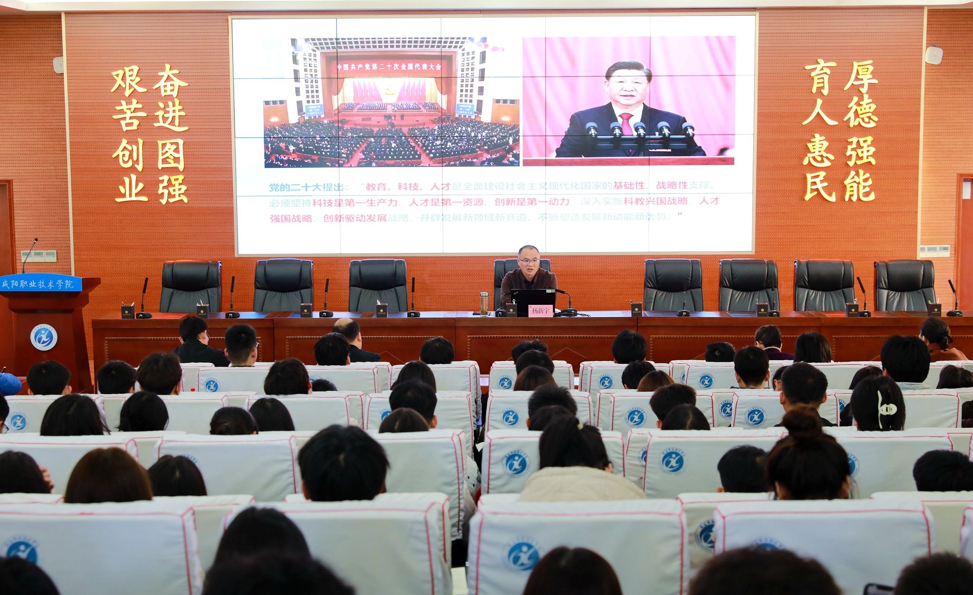 12月7日,杨新宇以“加快建设教育强国、科技强国、人才强国”为主题,首先以国产C919大型客机开启常态化商业运行案例导入新课,然后从着眼长远发展的重大抉择、铸就强国建设的坚实基础、加快强国建设的战略部署、充分发挥高校的重要作用四个方面展开授课。内容紧紧围绕强国建设过程中教育、科技、人才三者相辅相成的关系;党的十八大以来教育、科技、人才工作取得的历史性成就;国家在加快建设教育强国、科技强国、人才强国的战略部署和高校在强国建设中的重要作用等,授课主旨鲜明、内容丰富,案例新颖、知识量大,既有理论与现实的激烈碰撞,又不乏经典案例理论层面的哲学思辨,课堂气氛活跃。