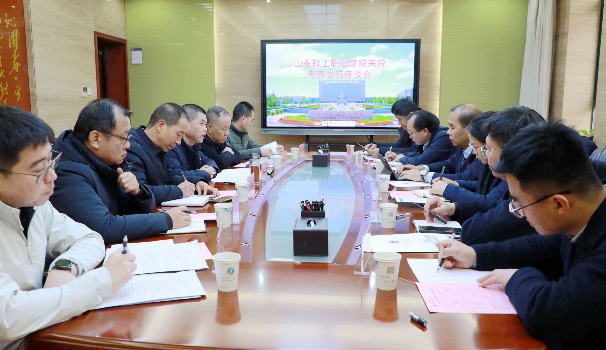 12月15日,山东轻工职业学院党委副书记、校长袁雷一行6人到咸阳职院考察交流。学院党委副书记张建刚,学院办公室、宣传统战部、教务处、机电(技师)学院相关工作负责人陪同考察。
