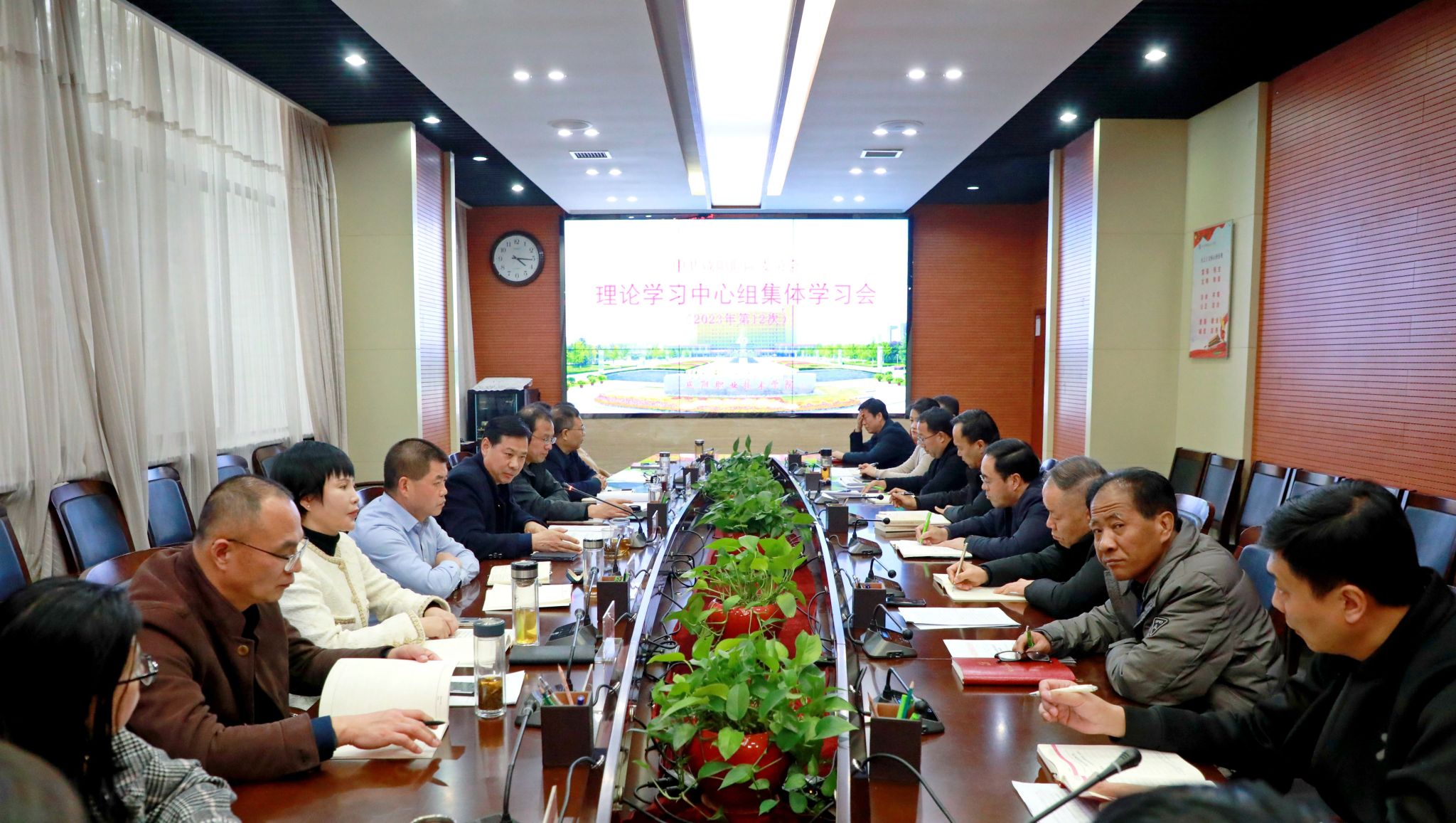 12月28日,咸阳职院党委召开2023年第12次理论学习中心组集体学习会。学院党委书记张迪,院长杨卫军,党委副书记张建刚,党委副书记、工会主席赵维,副院长芮红亚、王辉、杨新宇、吴旭锦,纪委书记王宇文及中心组成员参加学习会。