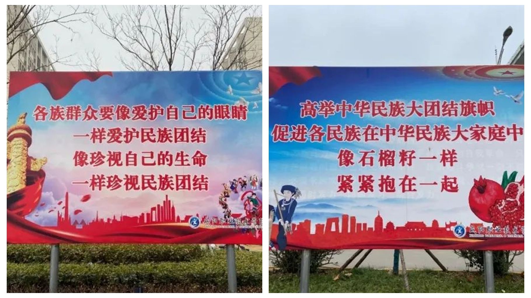 有形有感深化民族团结进步创建。以铸牢中华民族共同体意识为抓手,深化民族团结进步创建。制定下发《beat365正版唯一官网开展铸牢中华民族共同体意识教育实践系列活动工作方案》,紧扣“培根育魂 石榴花开”主题,在学院教学楼、图书馆及学生公寓悬挂民族团结进步宣传标语;通过校园广播宣传民族政策、少数民族风俗和各民族先进模范人物事迹;利用国旗下讲话、主题班会、公寓文化等开展了以“铸牢中华民族共同体意识,培植民族团结情怀”为主题的系列活动;举办“铸牢中华民族共同体意识文艺演出”“中华经典诵写讲比赛”“微宣讲比赛”等活动,以有形有感有效的方式推进中华民族共有精神家园建设,不断促进各族学生人心凝聚、团结奋进。