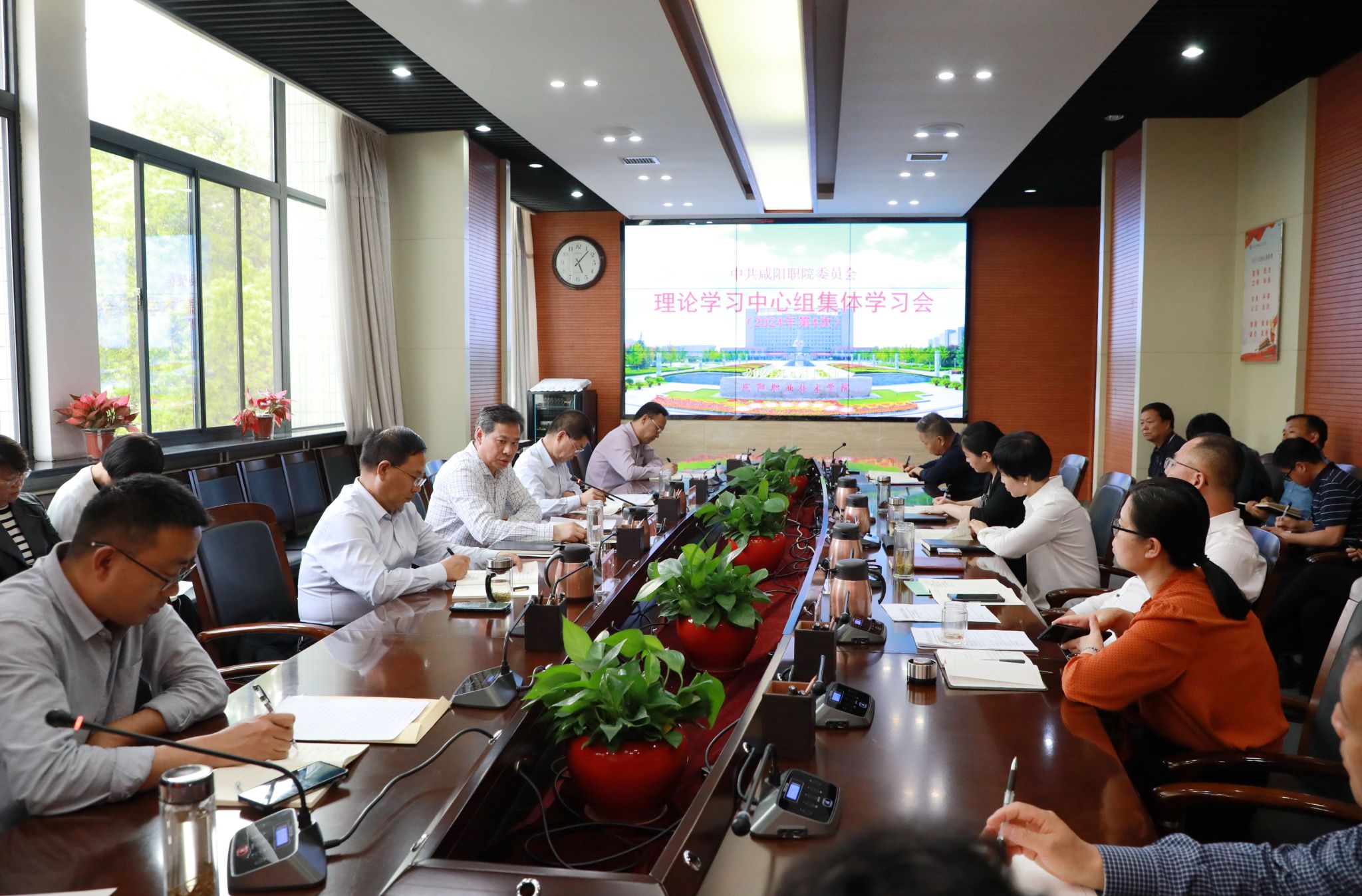 4月15日,咸阳职院党委召开2024年第4次理论学习中心组集体学习会。学院党委书记张迪,党委副书记张建刚,党委副书记、工会主席赵维,副院长芮红亚、杨新宇、吴旭锦,纪委书记书记王宇文及中心组成员、各党总支书参加学习会。