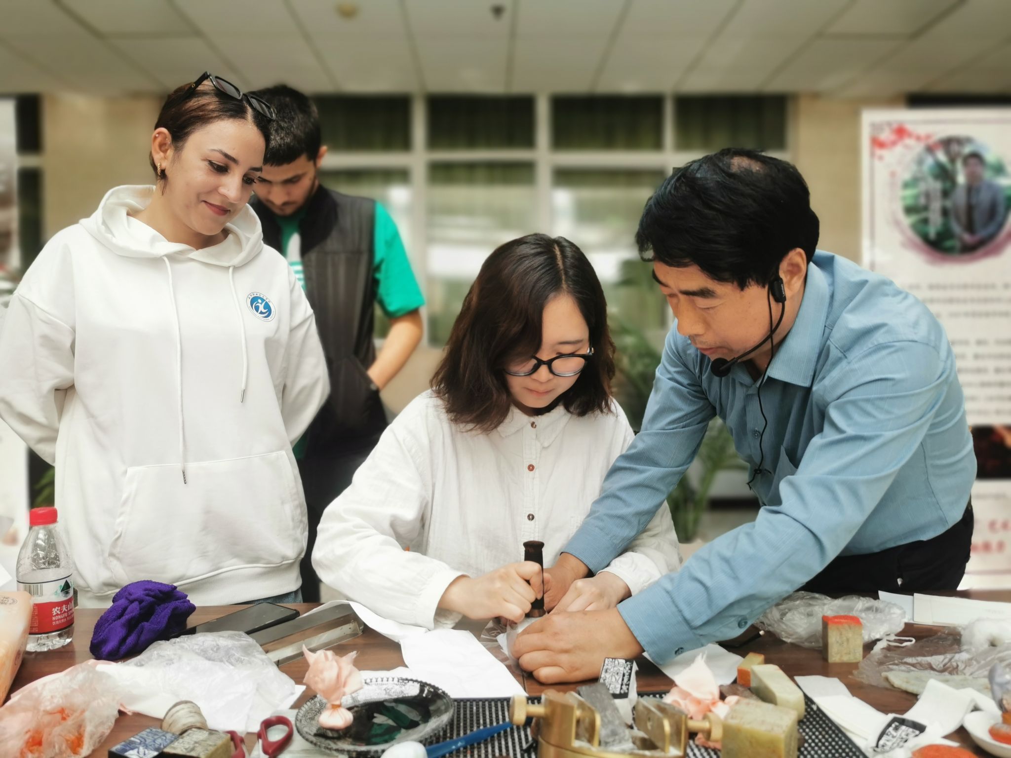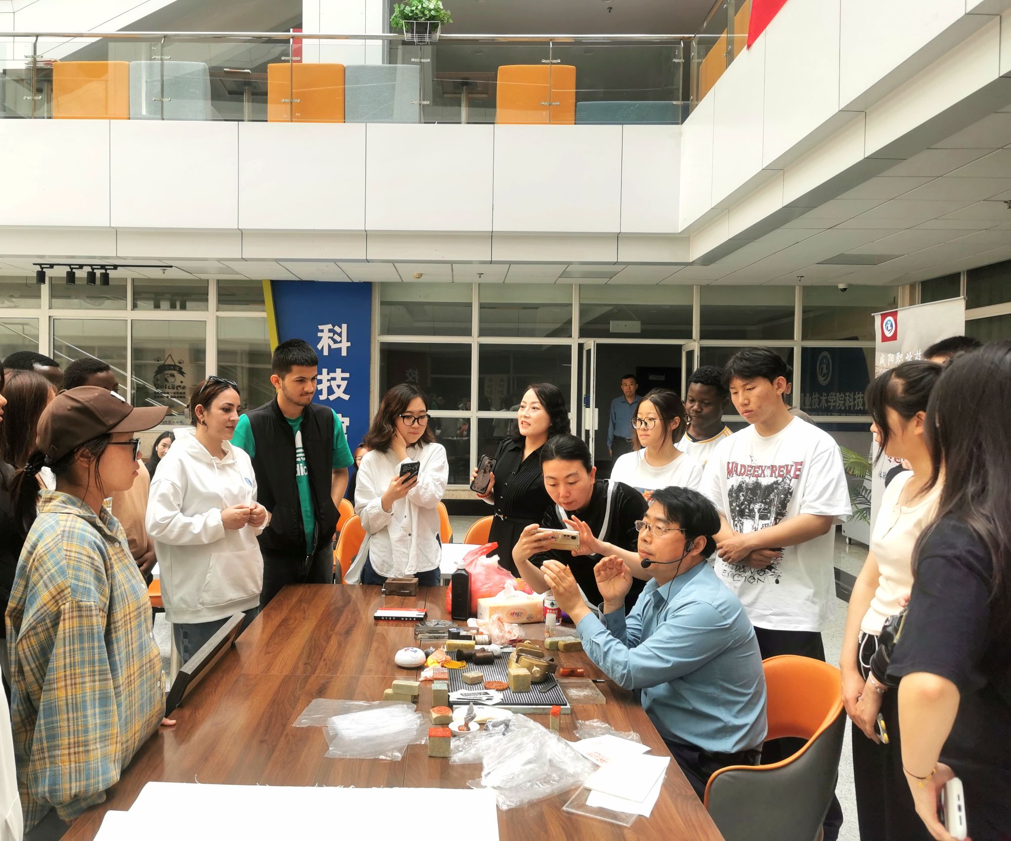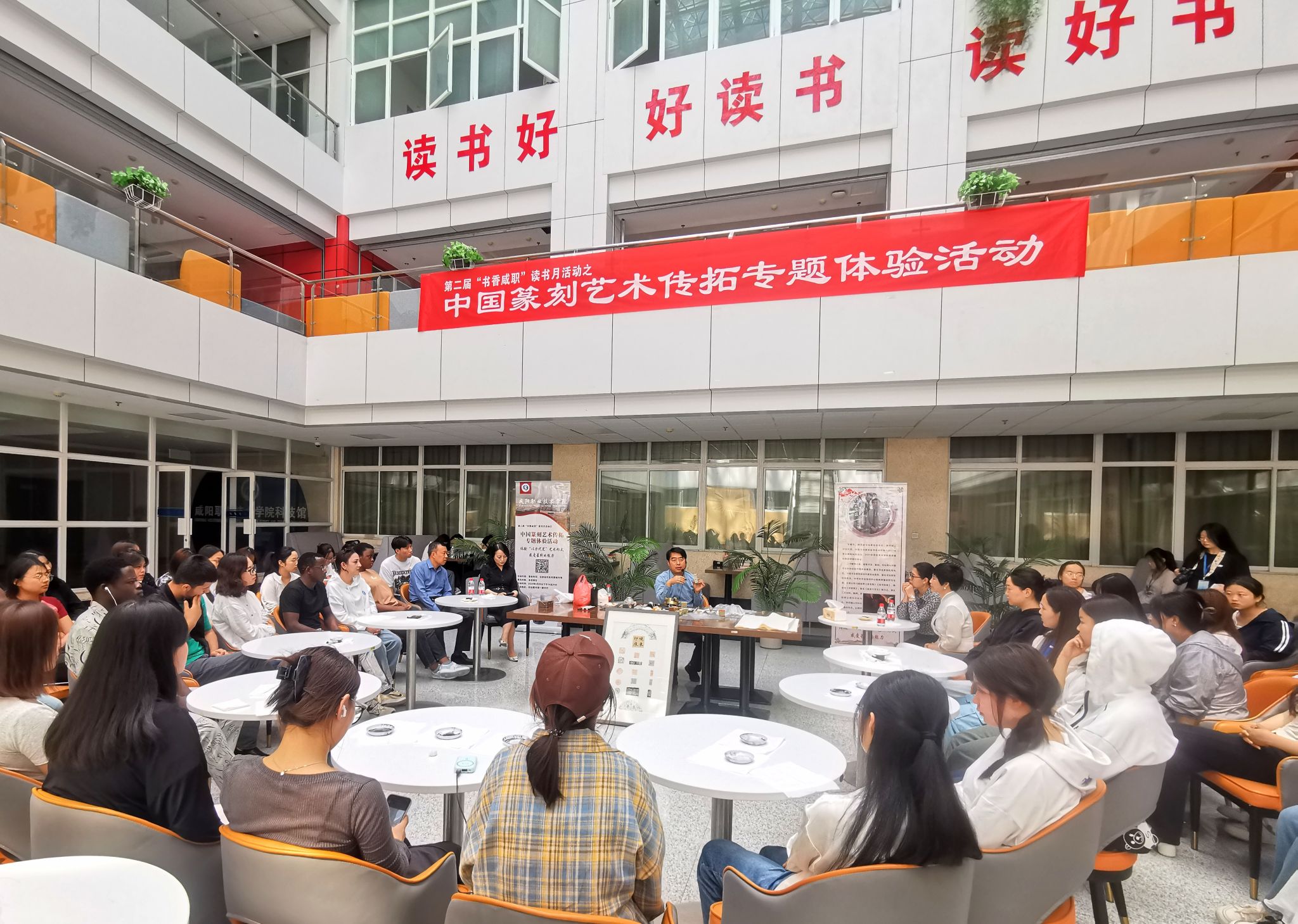 5月9日下午,咸阳职院第二届“书香咸职”读书月中国篆刻艺术传拓专题体验活动在仪祉图书馆举办。学院副院长芮红亚、纪委书记王宇文,仪祉图书馆、小学教育学院(国际教育学院)负责人和在校学生、外国留学生共同参与,感受传统文化的魅力。
