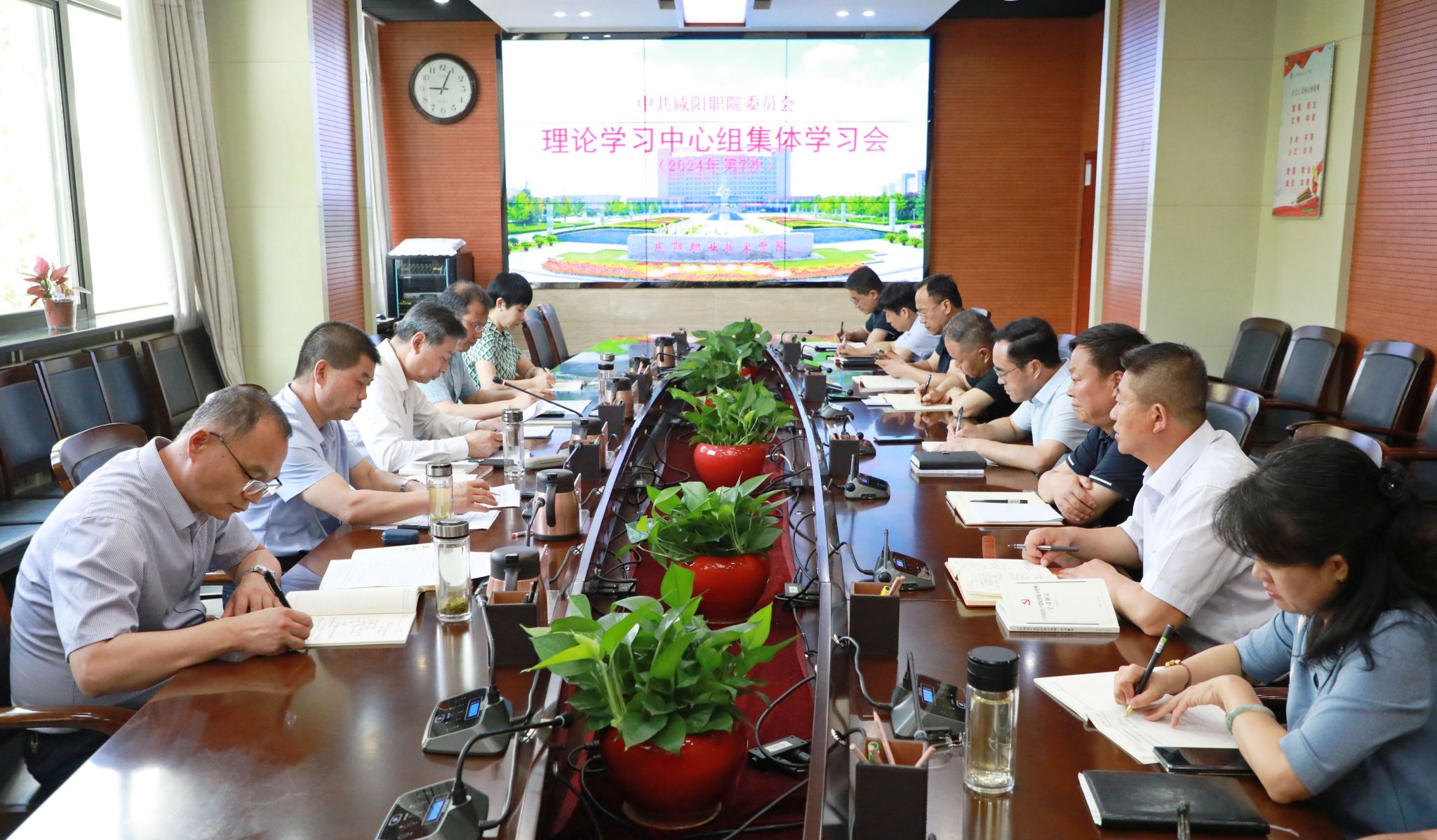 5月14日,咸阳职院党委召开2024年第7次理论学习中心组集体学习会。学院党委书记张迪,院长杨卫军,党委副书记张建刚,副院长芮红亚、杨新宇及中心组成员参加学习会。