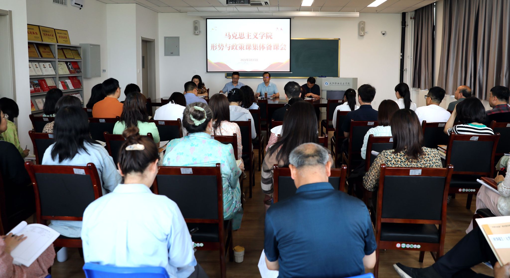 5月15日,咸阳职院马克思主义学院开展“形势与政策”课程集体备课活动,学院院长杨卫军参加备课会,并就如何上好一堂思政课与老师们进行交流。