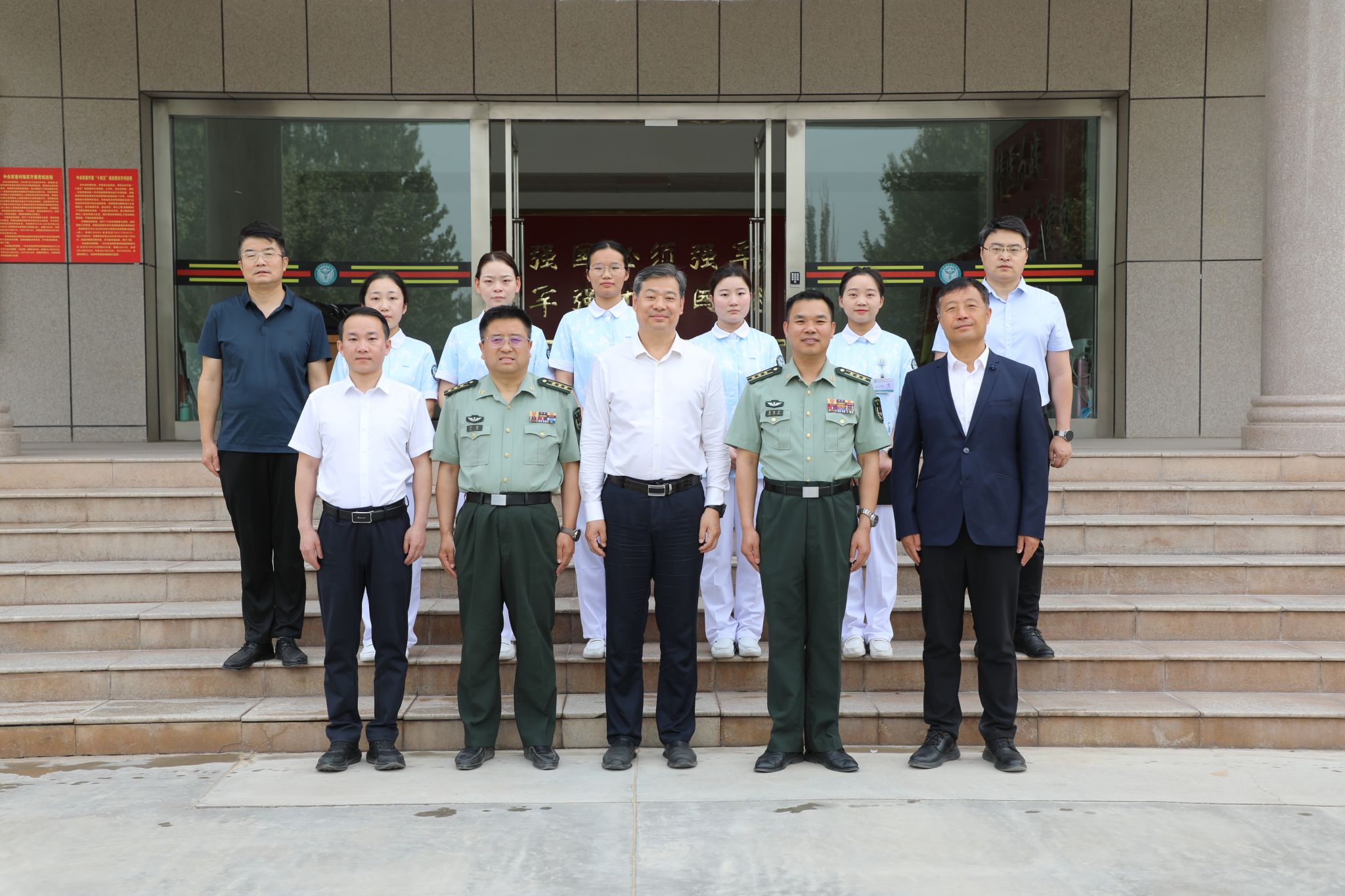 在中国人民解放军陆军第九四七医院,张迪与医院主要代表共同见证校院实习就业基地揭牌仪式。张迪对戍守边疆的医院官兵表达了崇高敬意,也感谢医院对咸职各级毕业生的关心、爱护和帮助。他表示校院合作大有所为,前景广阔,以王晓虎为代表的优秀毕业生们以自己的实际行动践行了咸职校训,受到到了医院领导的高度赞扬和认可,为双方的合作奠定了良好的基础。下一步,学院将持续深化与医院的合作发展,推动医校共建,培养更多军地两用医疗技术人才,共同为推动南疆乃至新疆医疗事业的发展作出新的更大贡献。