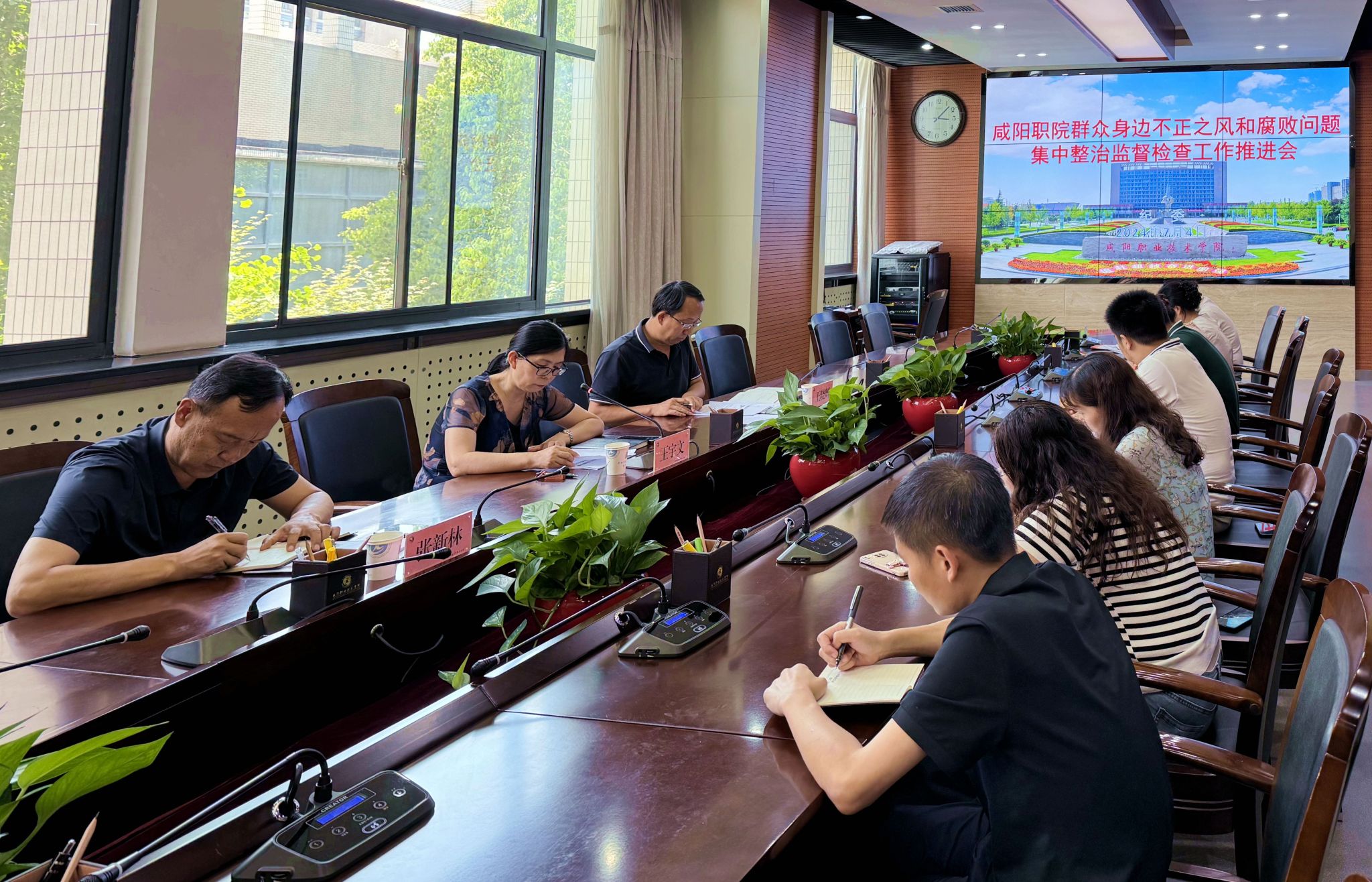 7月4日,纪委召开群众身边不正之风和腐败问题集中整治监督检查工作推进会,学院纪委书记王宇文、各监督检查组组长及成员、纪委全体工作人员参加会议。