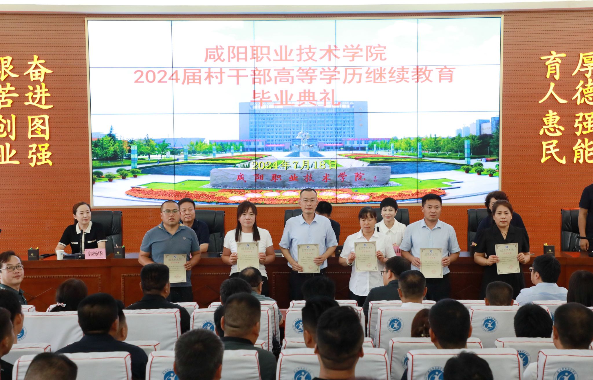 7月18日,咸阳职院举行2024届村干部高等学历继续教育毕业典礼。咸阳市委组织部副部长侯小兵,组织一科科长何国旺,咸阳职院副院长芮红亚,组织人事处、继续教育学院党政负责人,2024届村干部学历提升班全体学员及教师代表、辅导员代表共80余人参加毕业典礼。