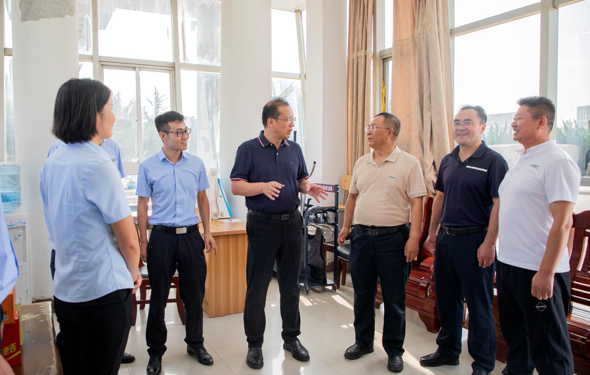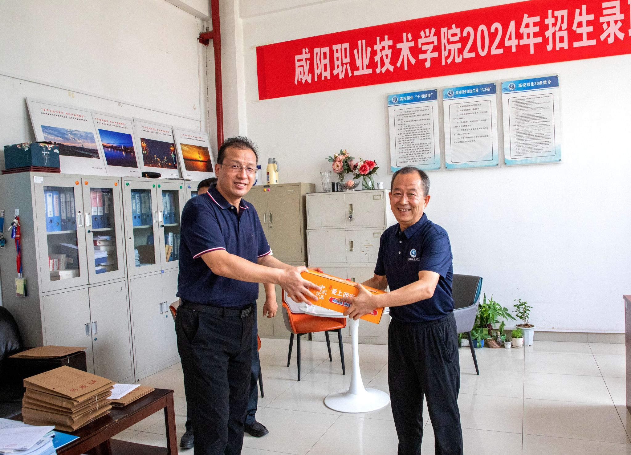 8月5日,咸阳职院院长杨卫军,党委副书记、工会主席赵维带队走访慰问暑期坚守一线的师生员工,并送去防暑降温物品。学院办公室、教务处、招生处、基建处、保卫处、后勤处等部门负责同志参加慰问。