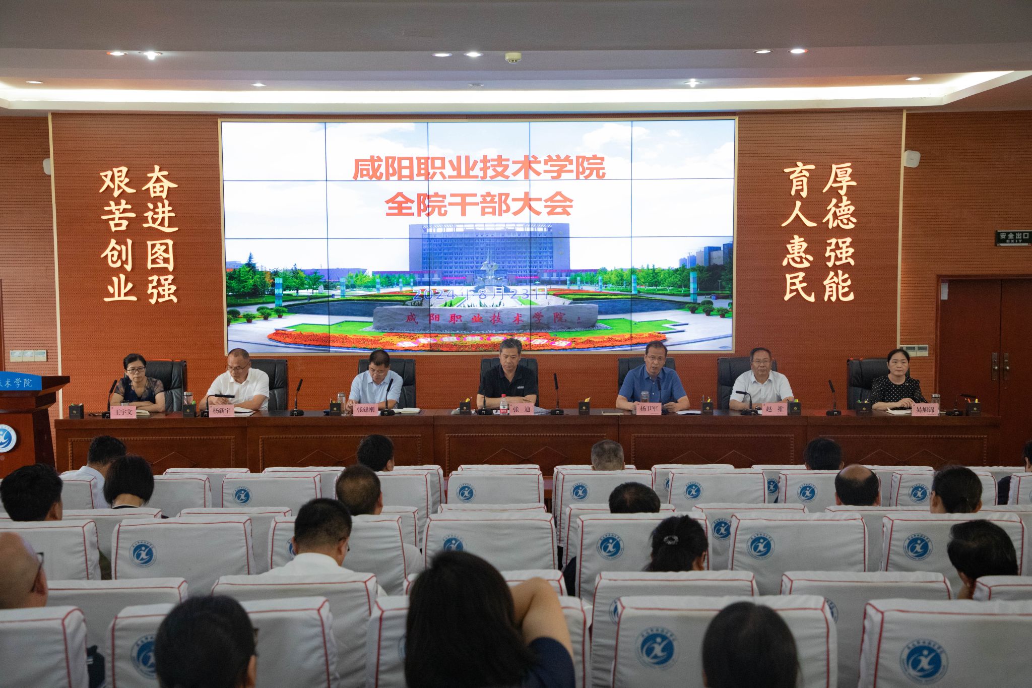 8月23日,咸阳职院召开全院管理干部大会。学院党委书记张迪,院长杨卫军,党委副书记张建刚,党委副书记、工会主席赵维,副院长杨新宇、吴旭锦,纪委书记王宇文和全院副科级及以上管理干部参加会议。会议由学院党委副书记张建刚主持。