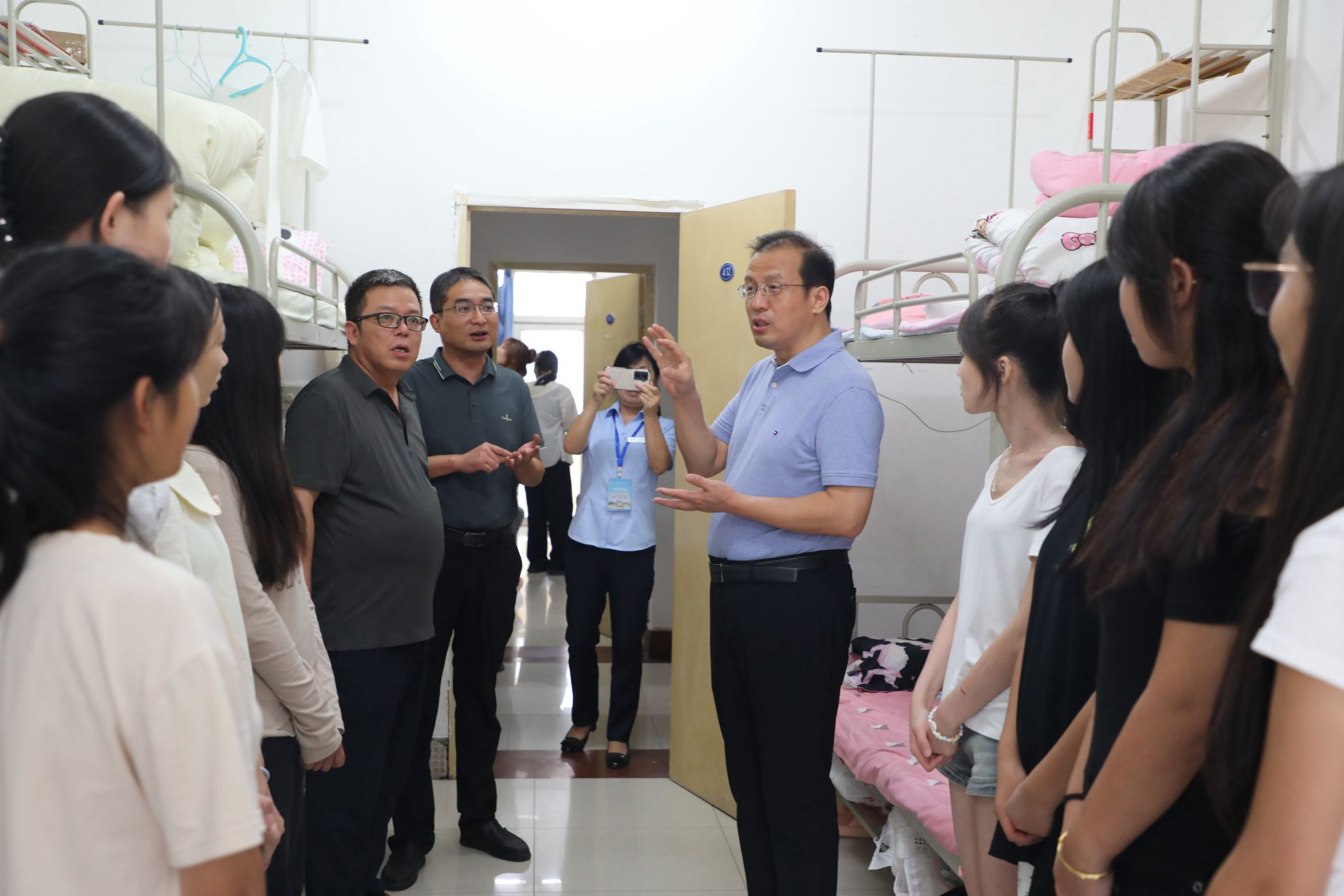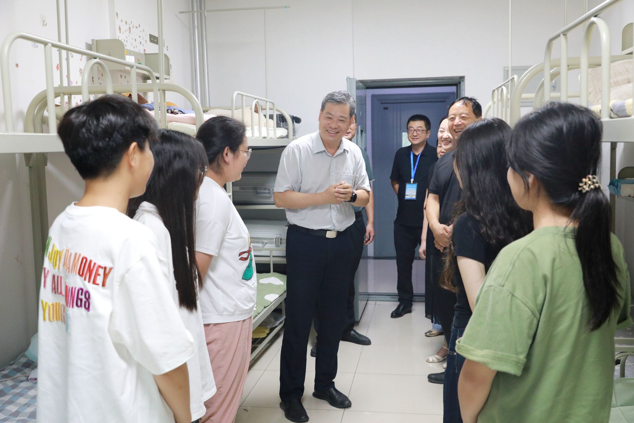 学院领导深入公寓,与同学们亲切交流,了解他们对校园环境、专业选择、未来发展等方面的想法。勉励同学们在新的求学阶段能立足自身、志存高远,尽快融入集体,做好学业规划,不断提升自己的综合素质,打磨专业技能,实现全方位发展。