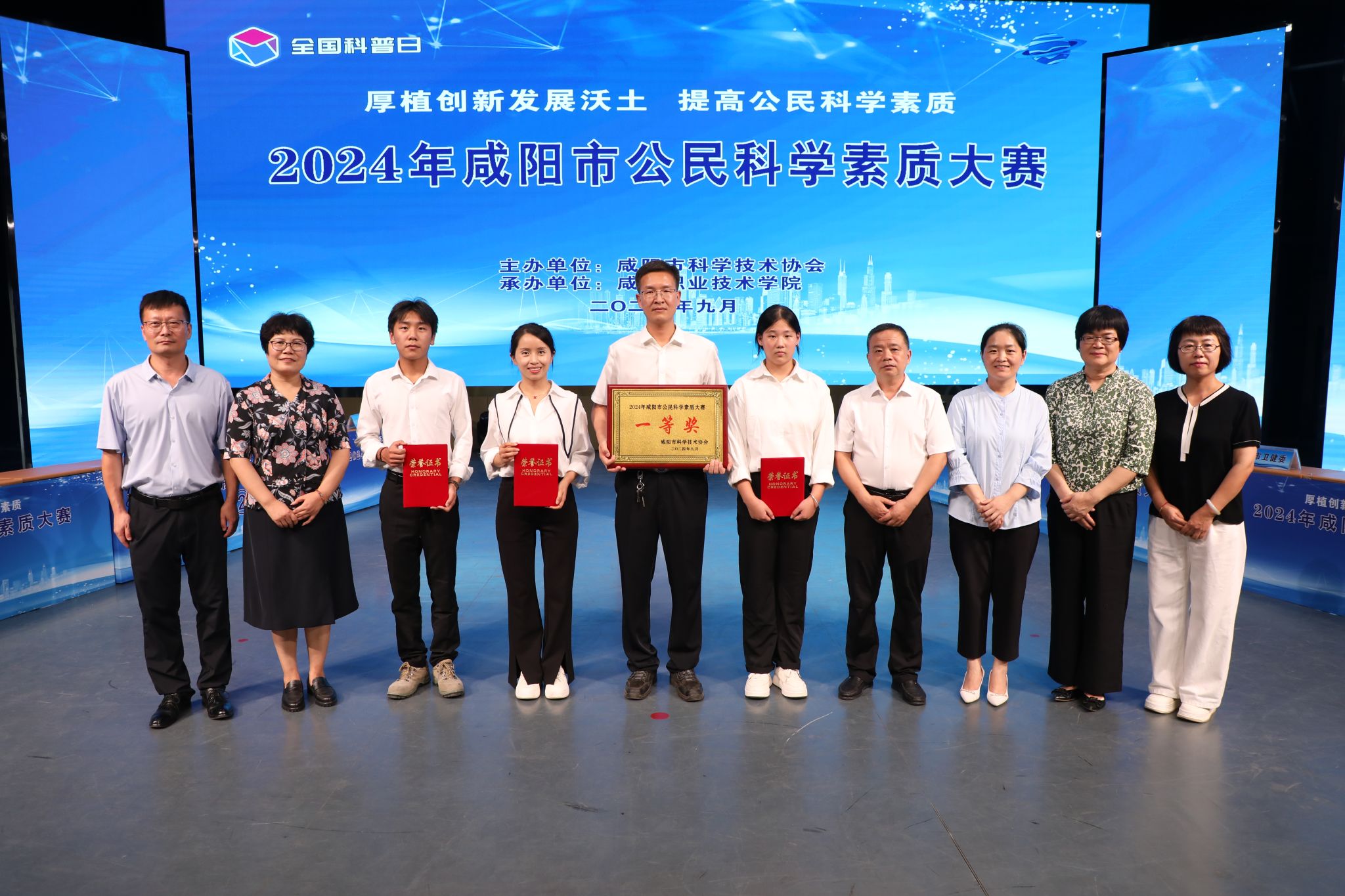 9月13日,由咸阳市科学技术协会主办,咸阳职院协办的2024年咸阳市公民科学素质大赛在咸阳职院顺利举办。市科协党组书记毛欣,市科协主席段雅乐,咸阳职院副院长吴旭锦,市科协党组成员、副主席罗文斌,市科协三级调研员陈娥出席决赛。
