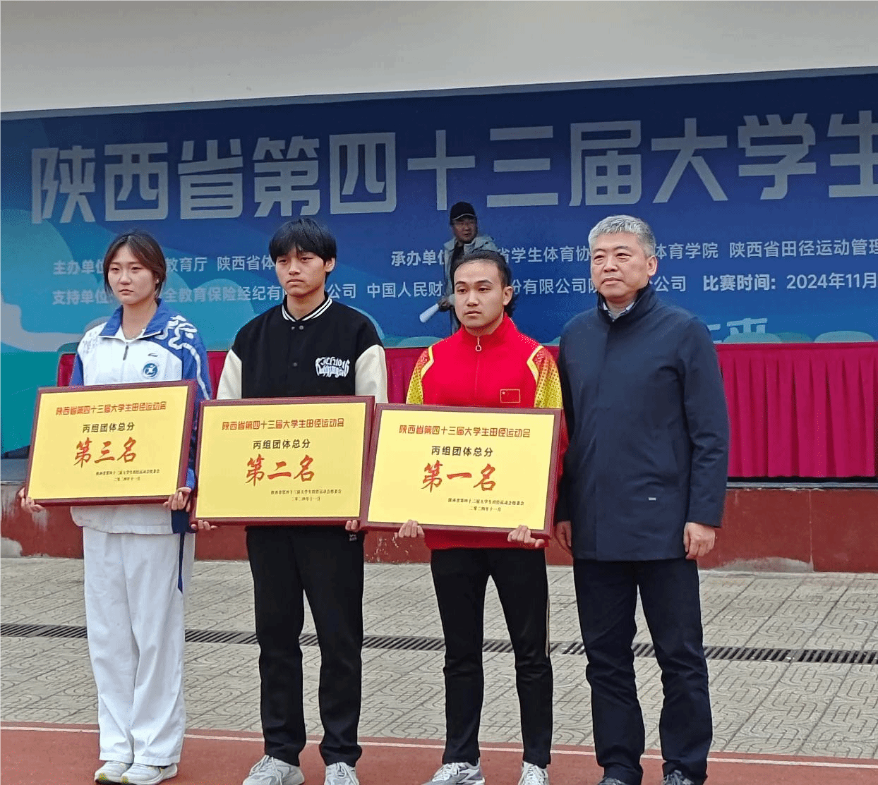 11月7—10日,陕西省第四十三届大学生田径运动会在西安体育学院成功举办。咸阳职院代表队以6金2银3铜的优异成绩位列丙组(高职高专组)金牌榜第一名,荣获丙组男女团体总分第三名。