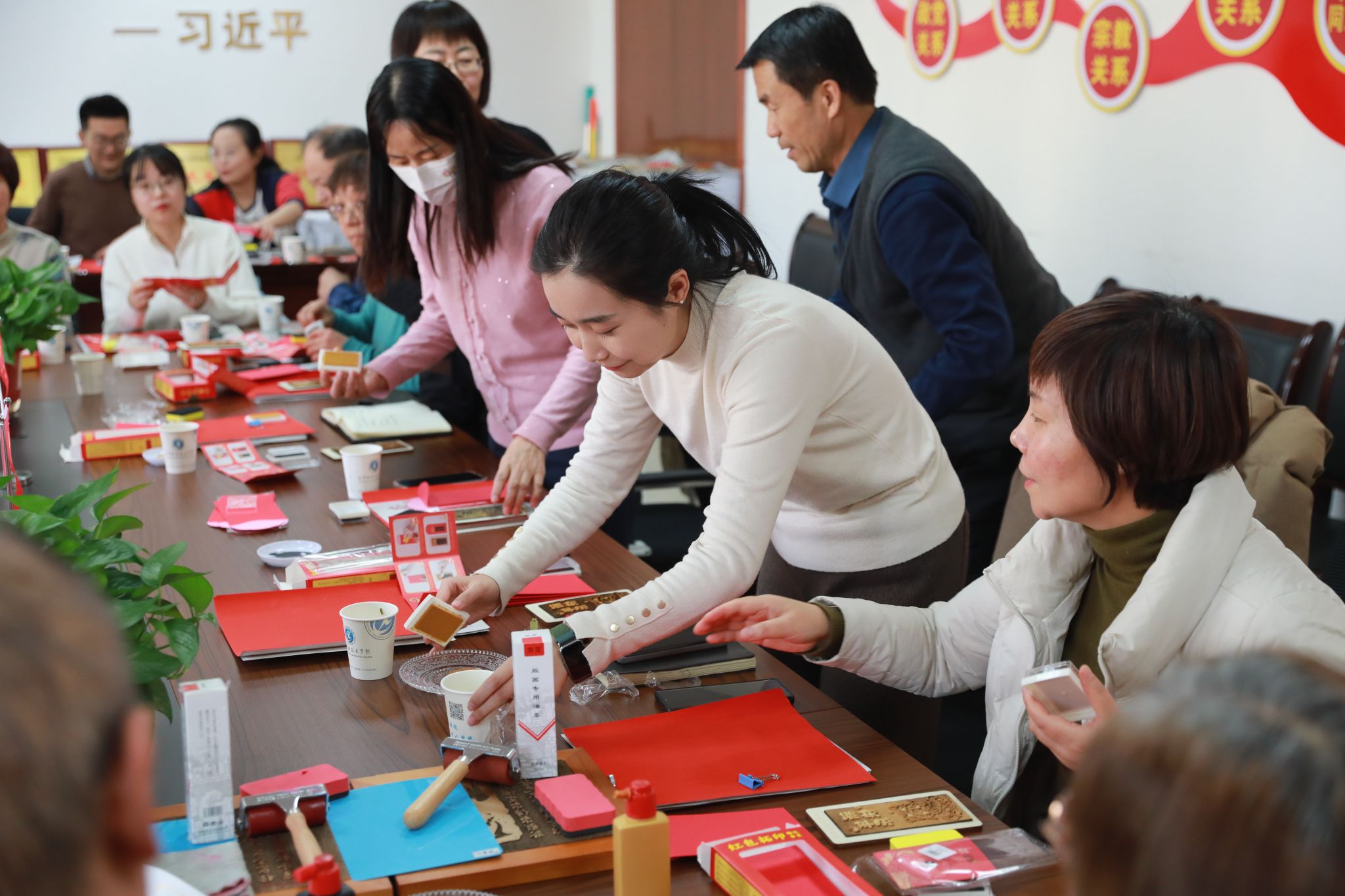 活动现场节日气氛浓厚,与会代表分别体验了雕版拓印、剪纸、写春联等传统技艺。此次党外知识分子迎新年联谊会的举办,进一步加强了党外知识分子之间的联系与交流,增强了凝聚力和向心力,为推动学院党外知识分子工作再上新台阶奠定了坚实基础,也为新一年高质量发展注入了强大动力。