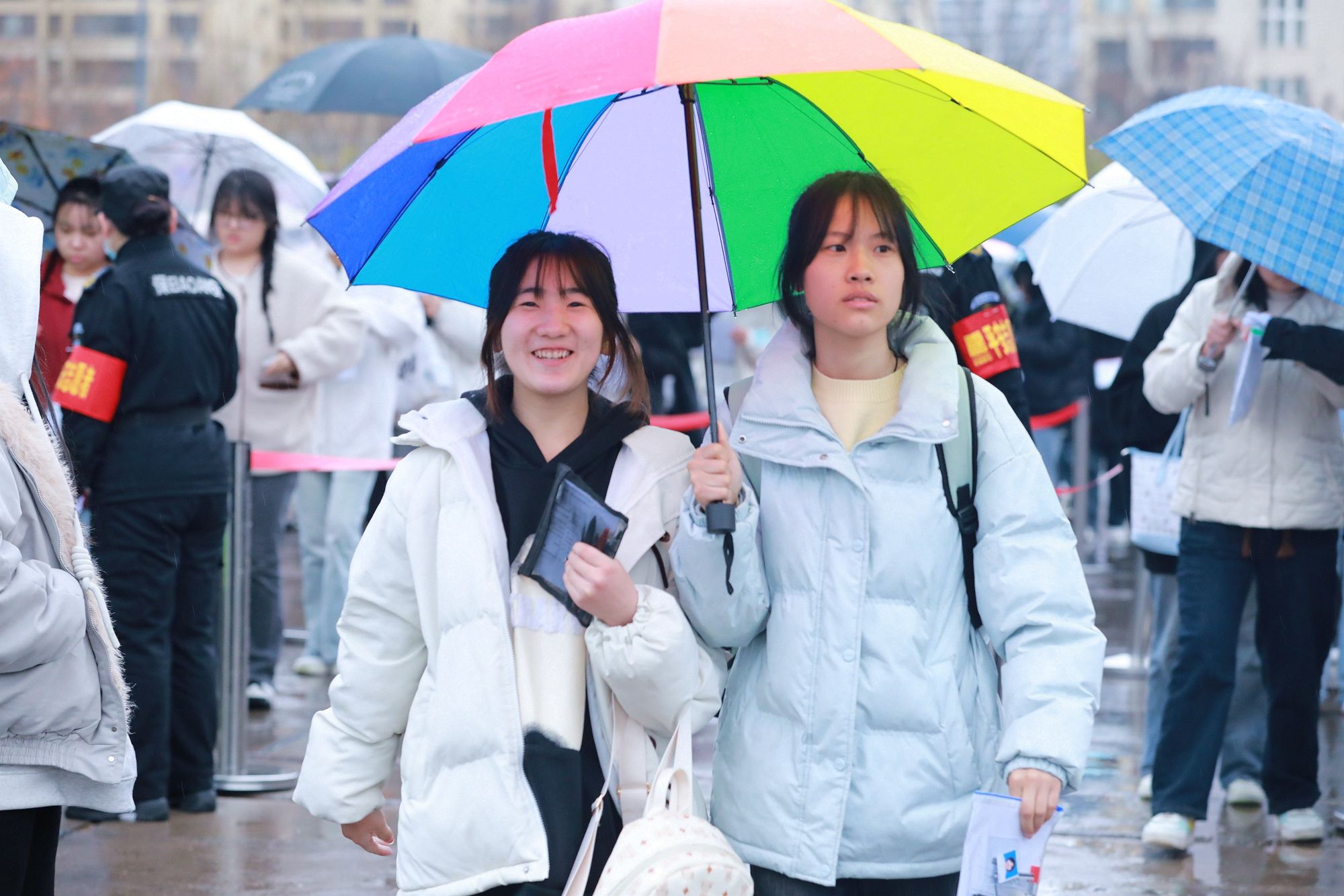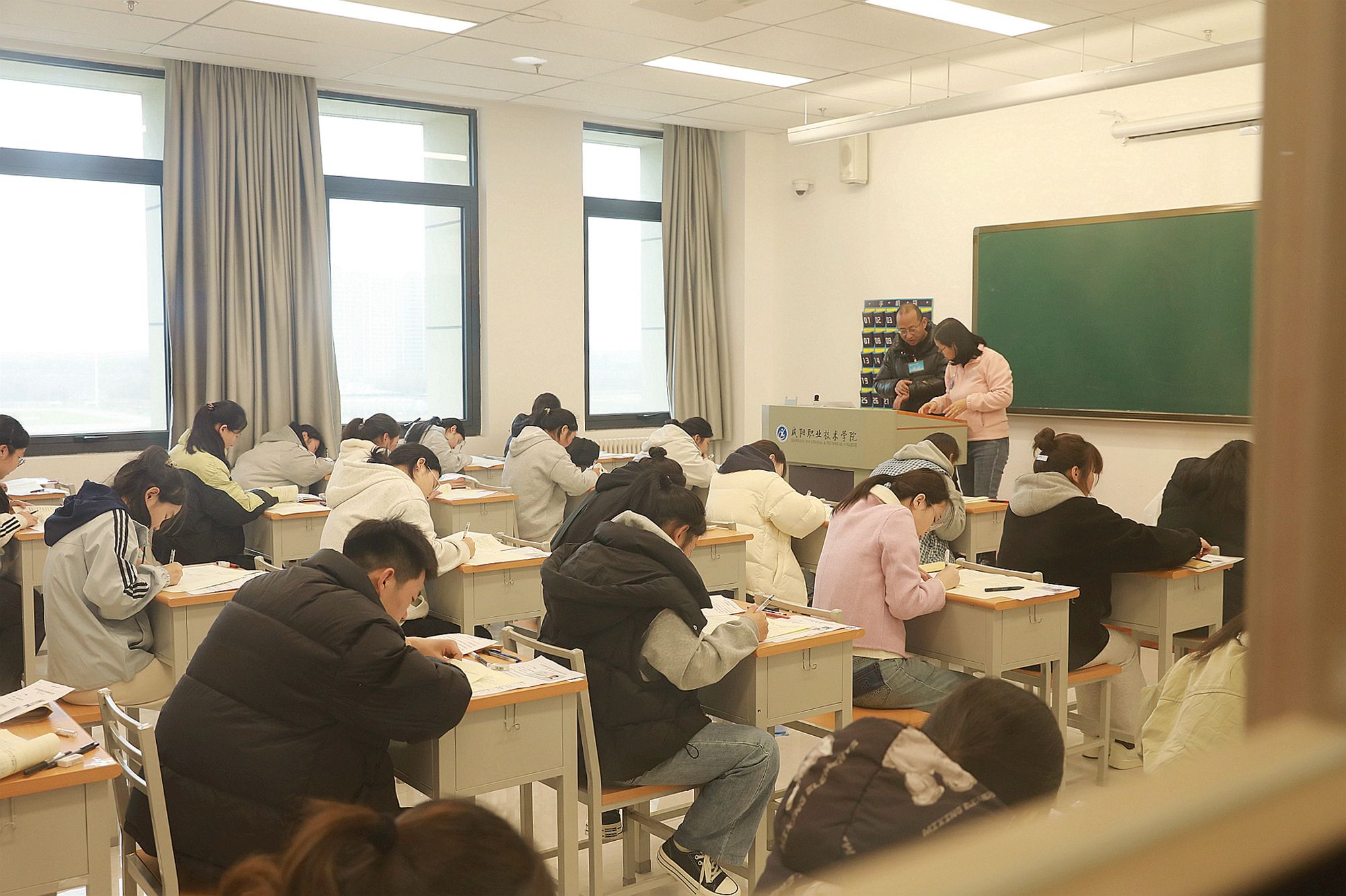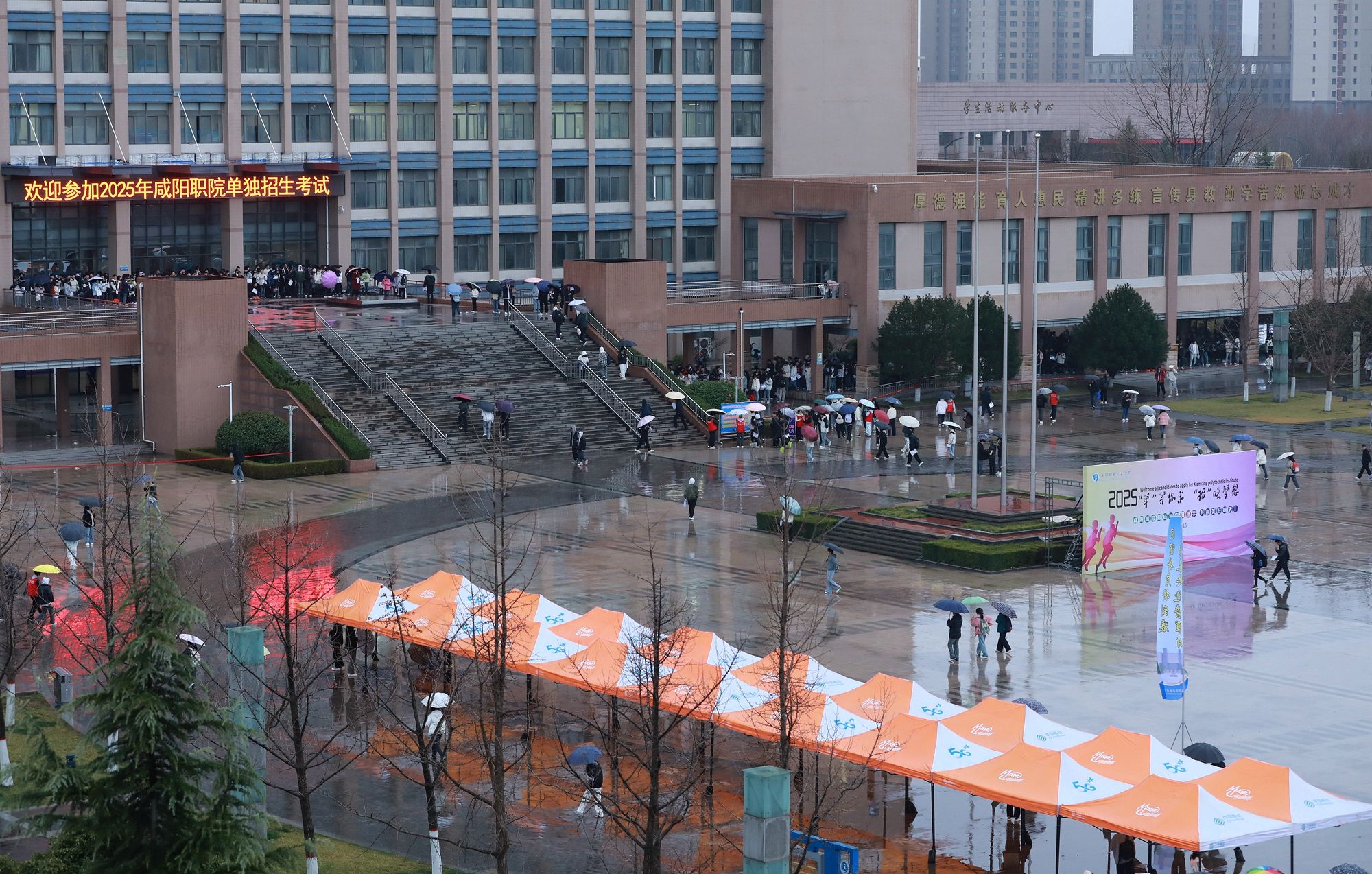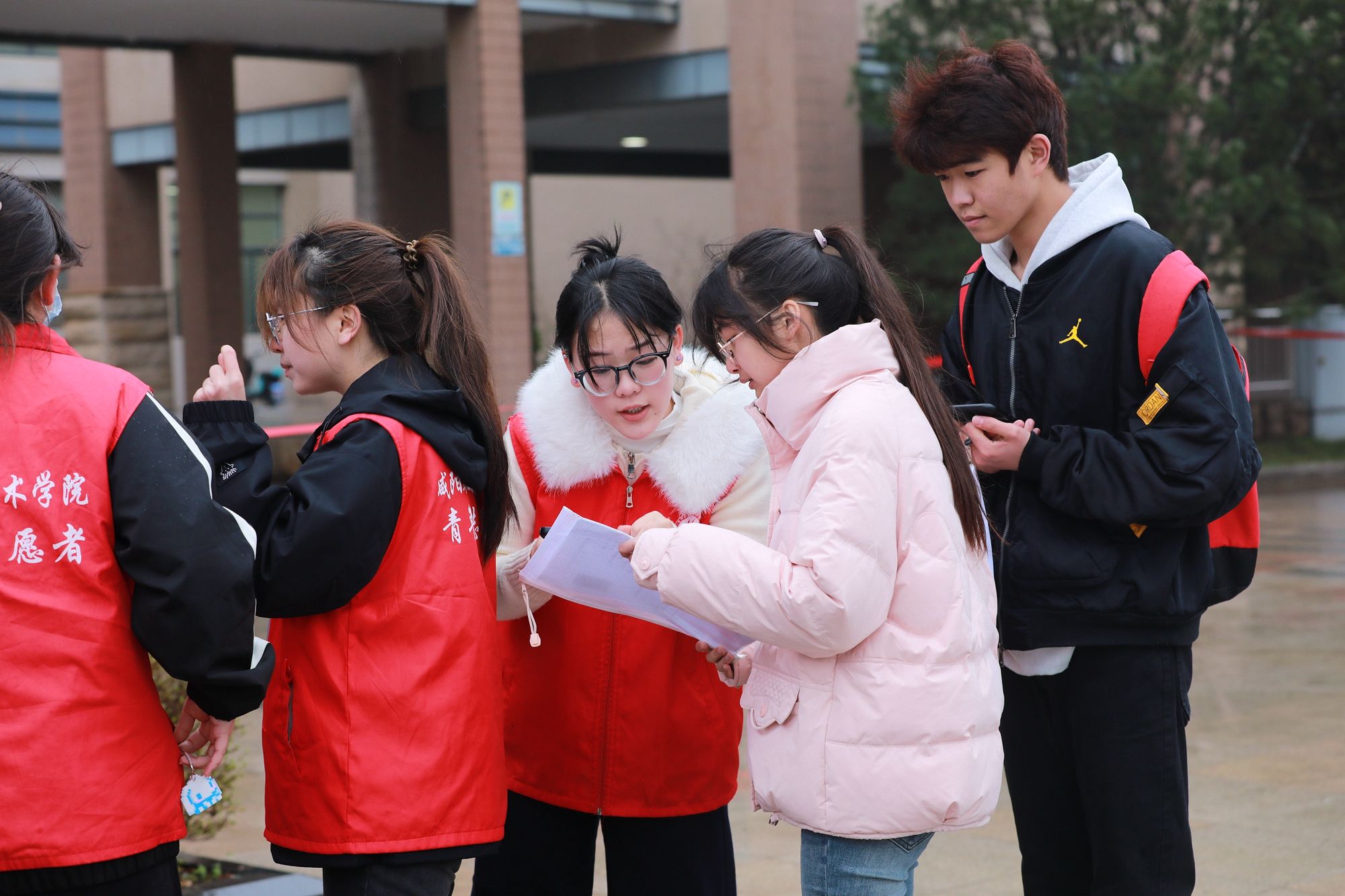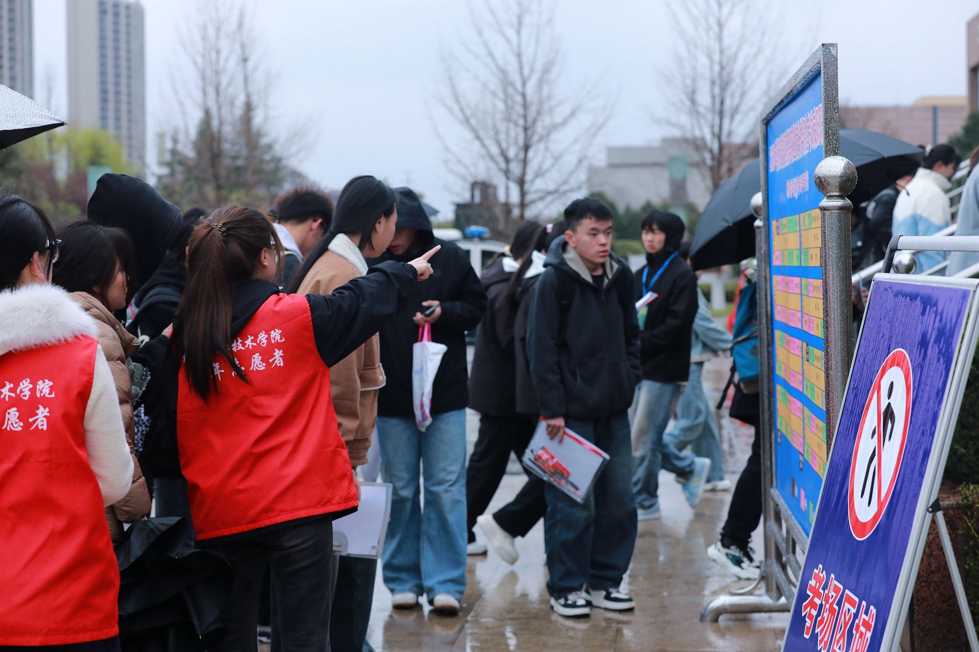 为营造有序、舒适的考试环境,尽力保障考生发挥最佳水平,学院多措并举,全方位对考试工作保驾护航。考试前期,通过学院官微,网站等媒体平台,提前向考生发布考试须知、考场分布、乘车指南、天气预报、午餐供应等信息。考试当天,学院非考试区域实行对外开放,欢迎广大考生家长进校参观。在体育馆、大学生活动中心设置 “家长等候区”提供热水和充电服务;餐厅对外开放,方便家长考生用餐;考务工作人员、安保人员及学生志愿者各司其职,组织考生有序排队等待入场;监考老师逐一核对考生身份信息,查验考生准考证,确保考生顺利参加考试;百余名志愿者持续开展考生接待、考场引导等服务保障工作。学院设置考生咨询服务点、准考证现场打印点,及时回应考生关切,处理考试突发状况。学院严谨细致的保障举措、规范有序的考务组织、热情周到的志愿服务,全面展示了学院的办学特色、校园文化以及师生员工的精神风貌,受到广大考生和家长的一致好评。在全院师生的共同努力下,咸阳职院圆满完成2025年单招考试工作。