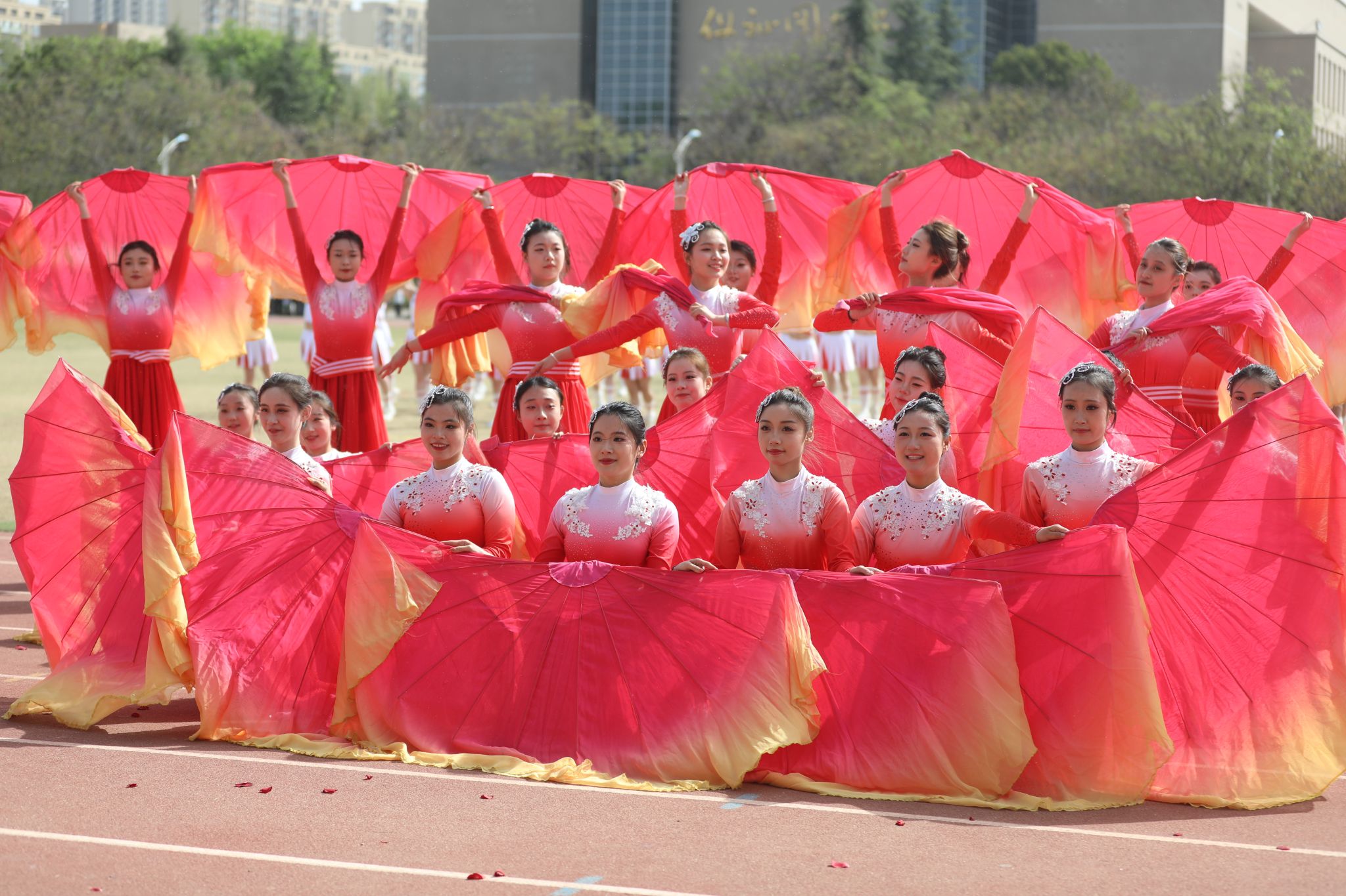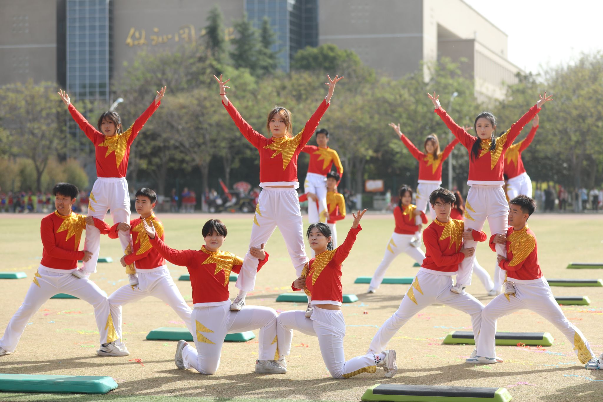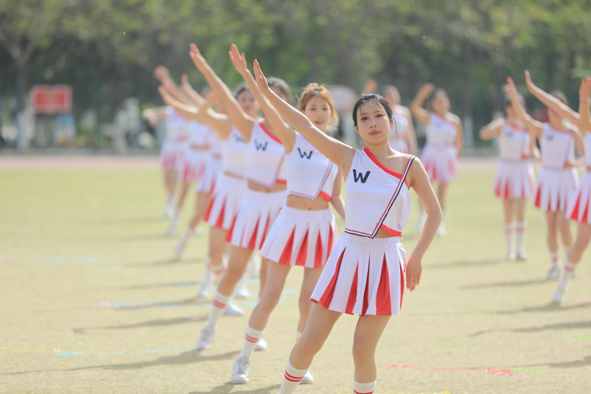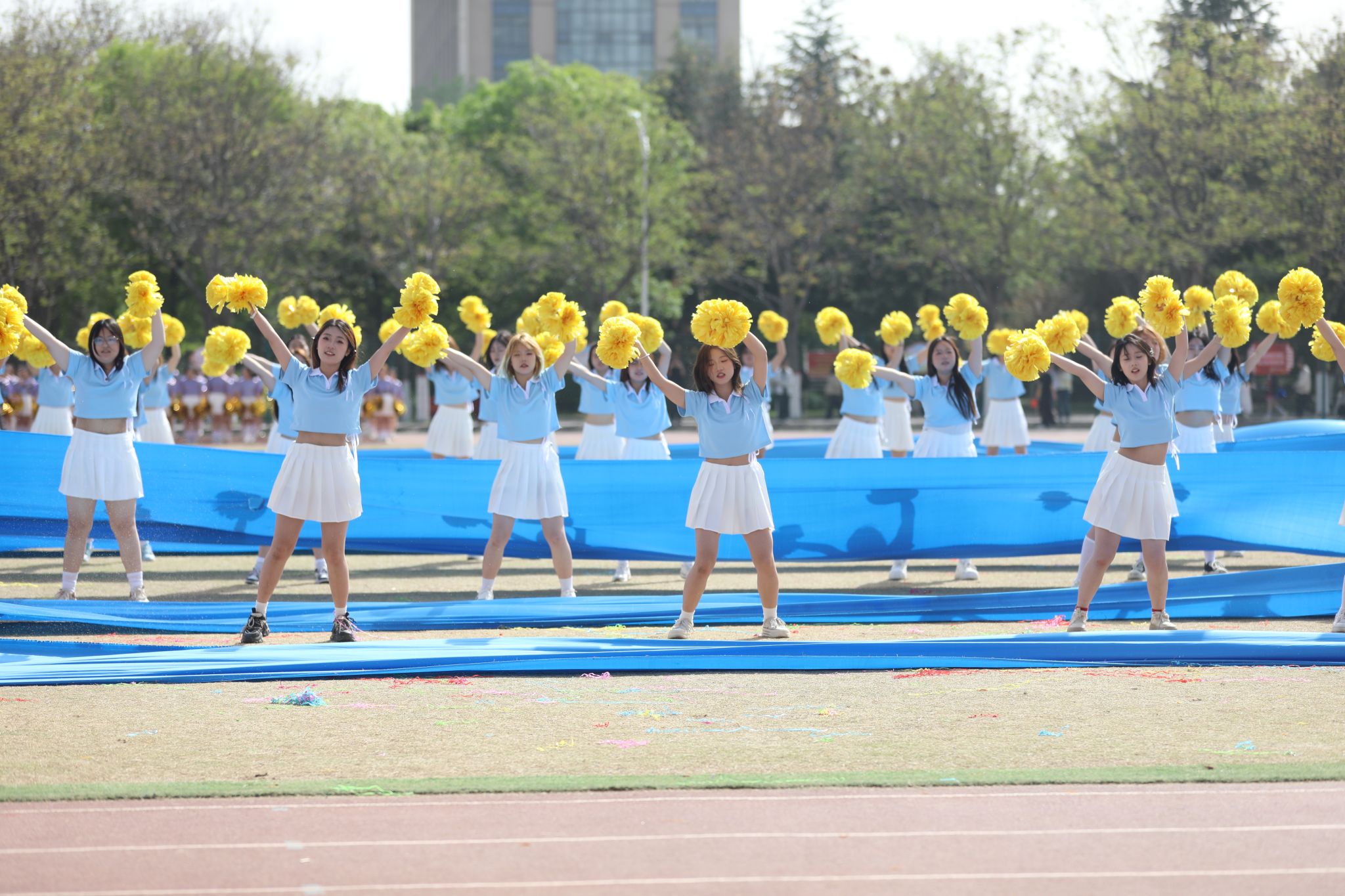 伴着欢快的鼓点,各二级学院百余名啦啦操队员手持五彩花球奔向绿茵场,以跃动的节奏点燃全场的热情,为运动员们呐喊助威。活力四溢的健美操表演,传递着阳光健康的积极能量,动感欢快的舞步,奏响青春的灿烂乐章。气势恢宏的舞旗表演,动作干净利落,学子们将翻涌的红色绸缎化作燎原之火,热烈的中国红覆盖全场,象征着学院师生共同的初心底色。展现出新一代青年不屈不挠,勇于拼搏的精神,彰显着咸职学子对胜利的渴望和对挑战的无畏。优美动人的团体舞蹈迈着优雅的步伐,舞动着绚丽的裙摆,犹如盛开的鲜花,诉说着咸阳职院学子对青春的宣言和对祖国深情的告白。他们积极向上、开拓进取,以专业为墨,以青春作砚,在力与美中挥毫出咸职人守正创新、踔厉奋发的精神风貌,彰显出顽强拼搏、超越自我的体育精神。