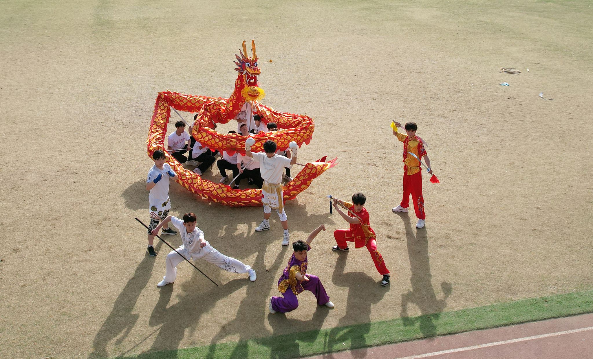 上午8时30分,运动会在《龙影武奇》武术展演中拉开序幕。国旗护卫队身着戎装,护送国旗率先入场,彩旗方阵、裁判员方阵、运动员代表方阵踏着《运动员进行曲》的节拍,迈着坚定步伐依次入场,形成流动的青春画卷。旗手高举院旗阔步向前,运动员们昂首挥臂,踏出铿锵节奏,气势如虹。他们朝气蓬勃、神采飞扬,高喊嘹亮口号,意气风发地依次走过主席台和观众席,迎着清晨的骄阳向前进发,彰显出无限激情和必胜决心。随后,全体师生面向国旗列队肃立,注视着五星红旗冉冉升起,齐声高唱国歌。