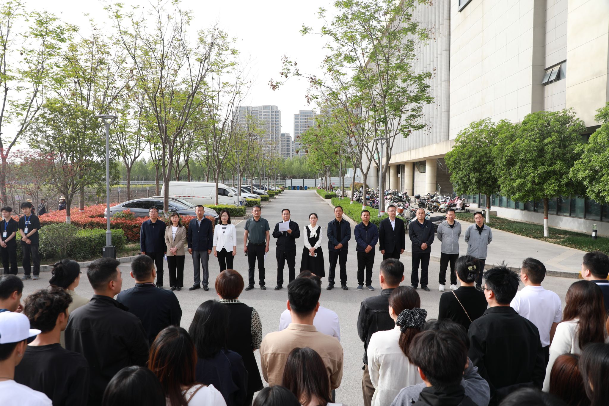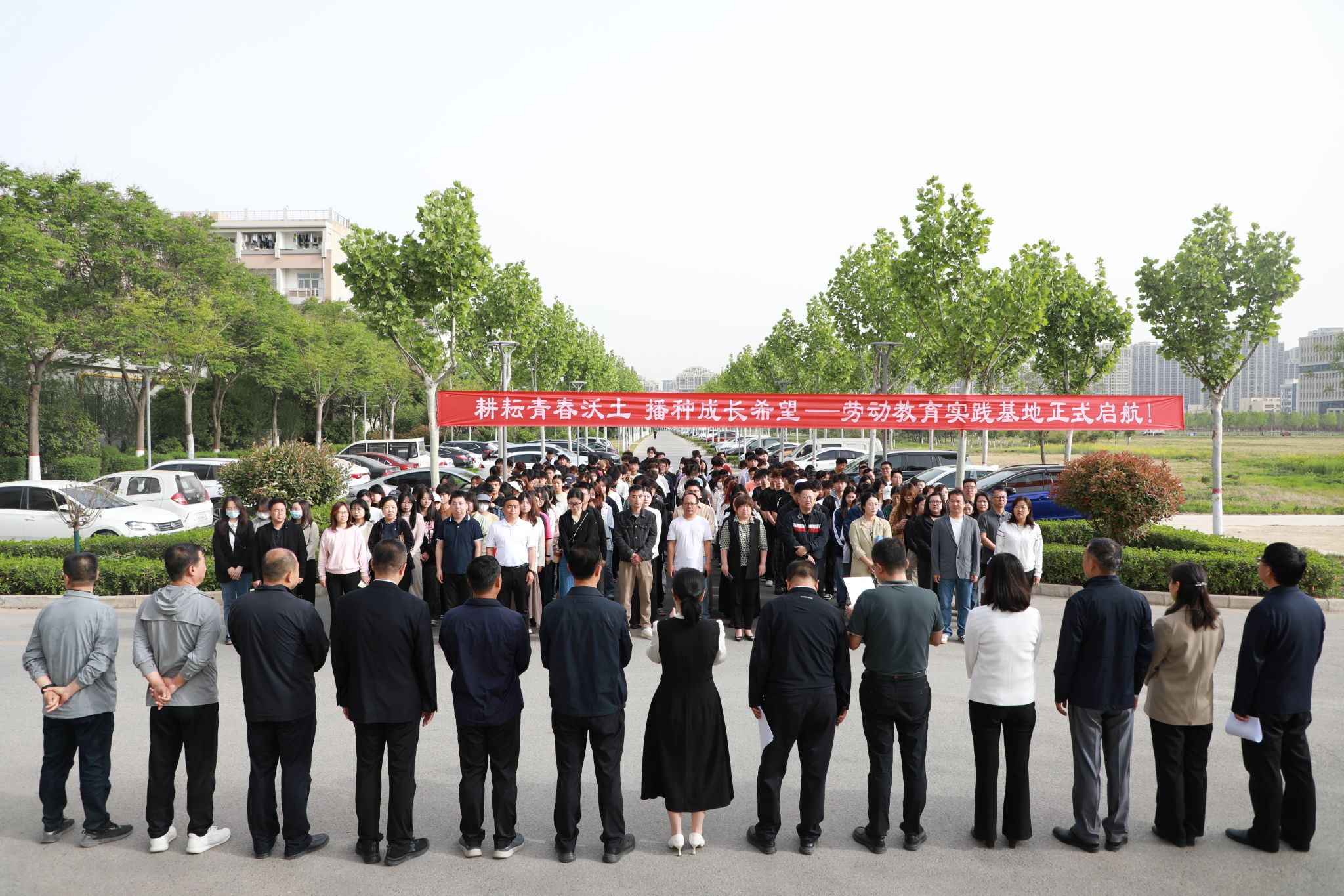 4月16日上午,咸阳职院举行“一站式”学生社区劳动教育实践基地开园揭牌仪式。学院党委副书记赵维,副院长吴旭锦,各二级学院党总支书记、副书记、学发办主任、副主任,辅导员代表,学生代表,学生处工作人员共300余人参加活动。