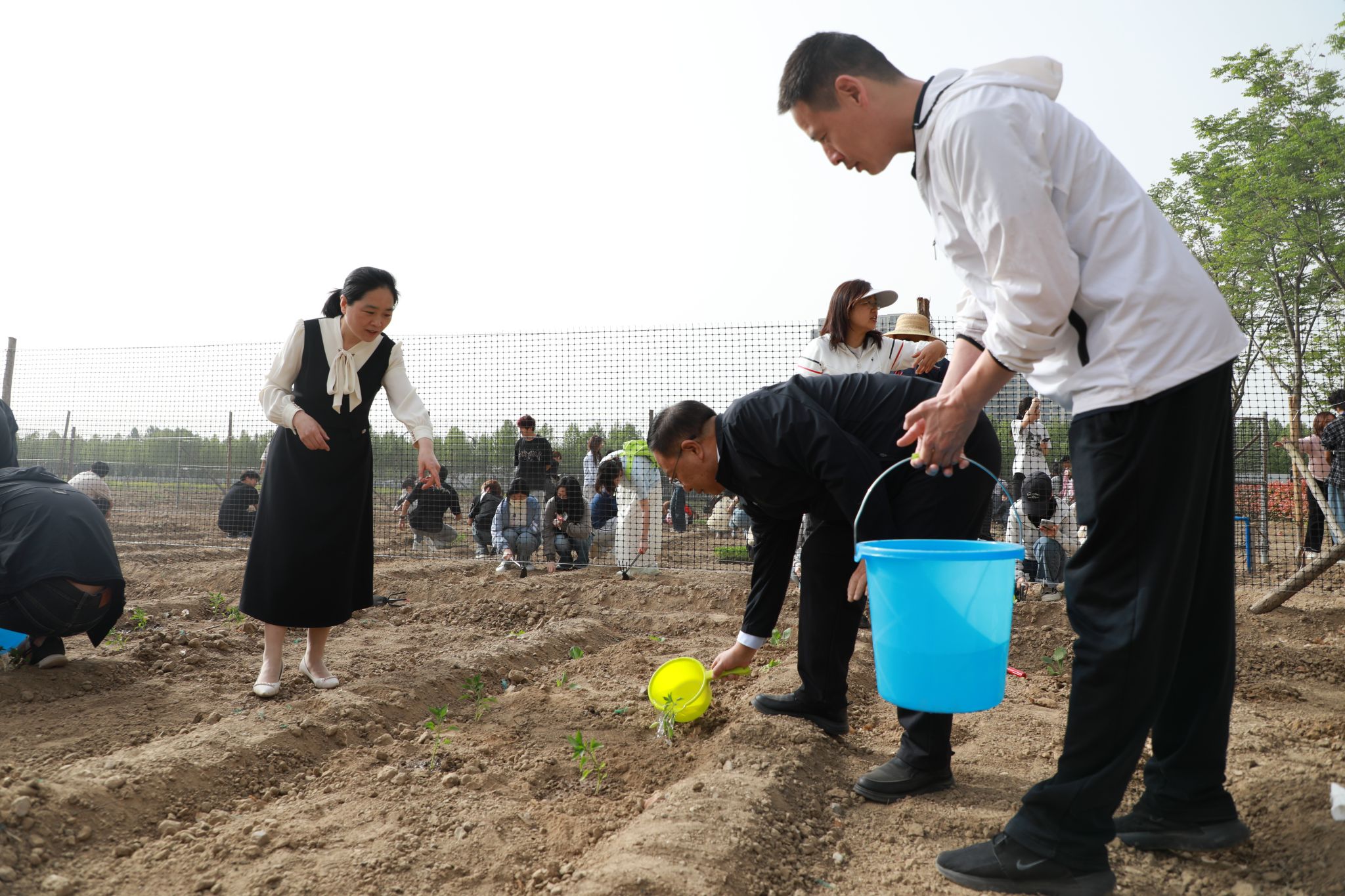 揭牌仪式结束后,参与活动的领导和师生们一同走进劳动教育实践基地,在专业人员的指导下,开展首场劳动实践种植活动。师生们拿起工具,翻地、栽苗、培土、浇水,在劳动中相互协作,感受劳动带来的乐趣与充实。