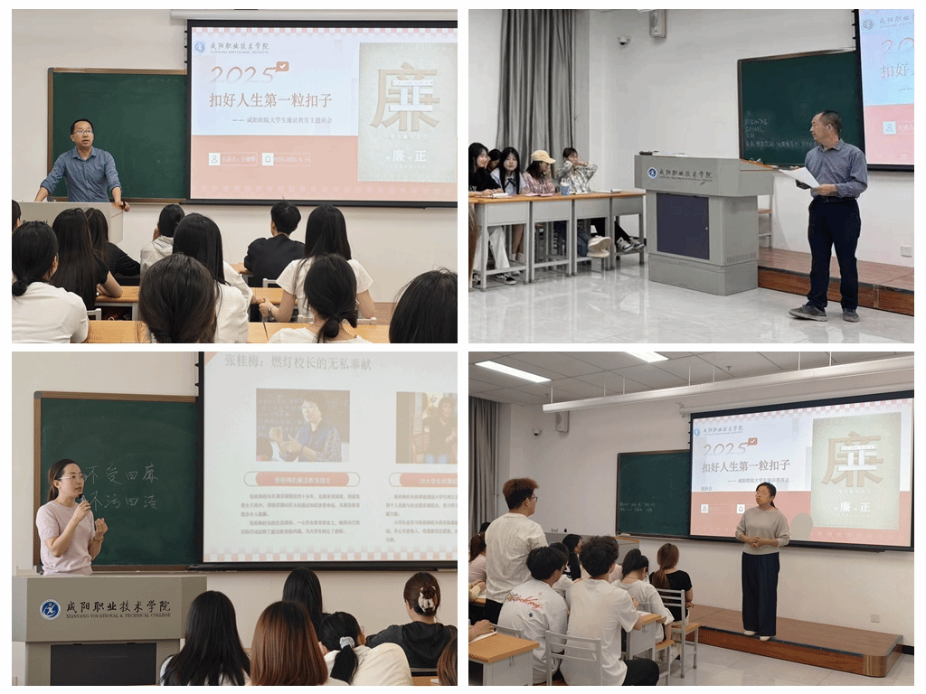 本次主题班会由咸阳职院纪委联合学生处举办,旨在把廉洁价值理念进一步融入教育教学、人才培养全过程,将廉洁教育与学生的生活、学习、就业相结合,让刚入校和即将步入社会的大学生,在潜移默化中形成廉洁自律、爱岗敬业的职业理念,将“崇廉尚洁”的社会价值观融入自我价值,树立爱国守法、明礼诚信的良好行为准则和理想信念。