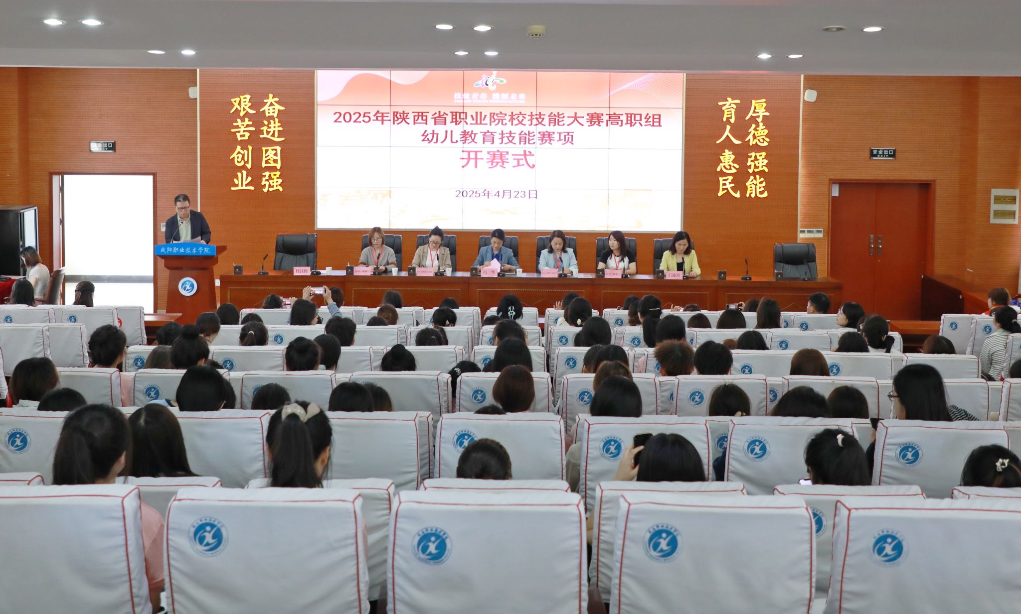 4月23日至25日,由陕西省教育厅主办、陕西省教育科学研究院协办的2025年陕西省职业院校技能大赛(高职组)幼儿教育技能赛项在咸阳职院顺利举办,来自全省22支代表队、82名选手参赛。