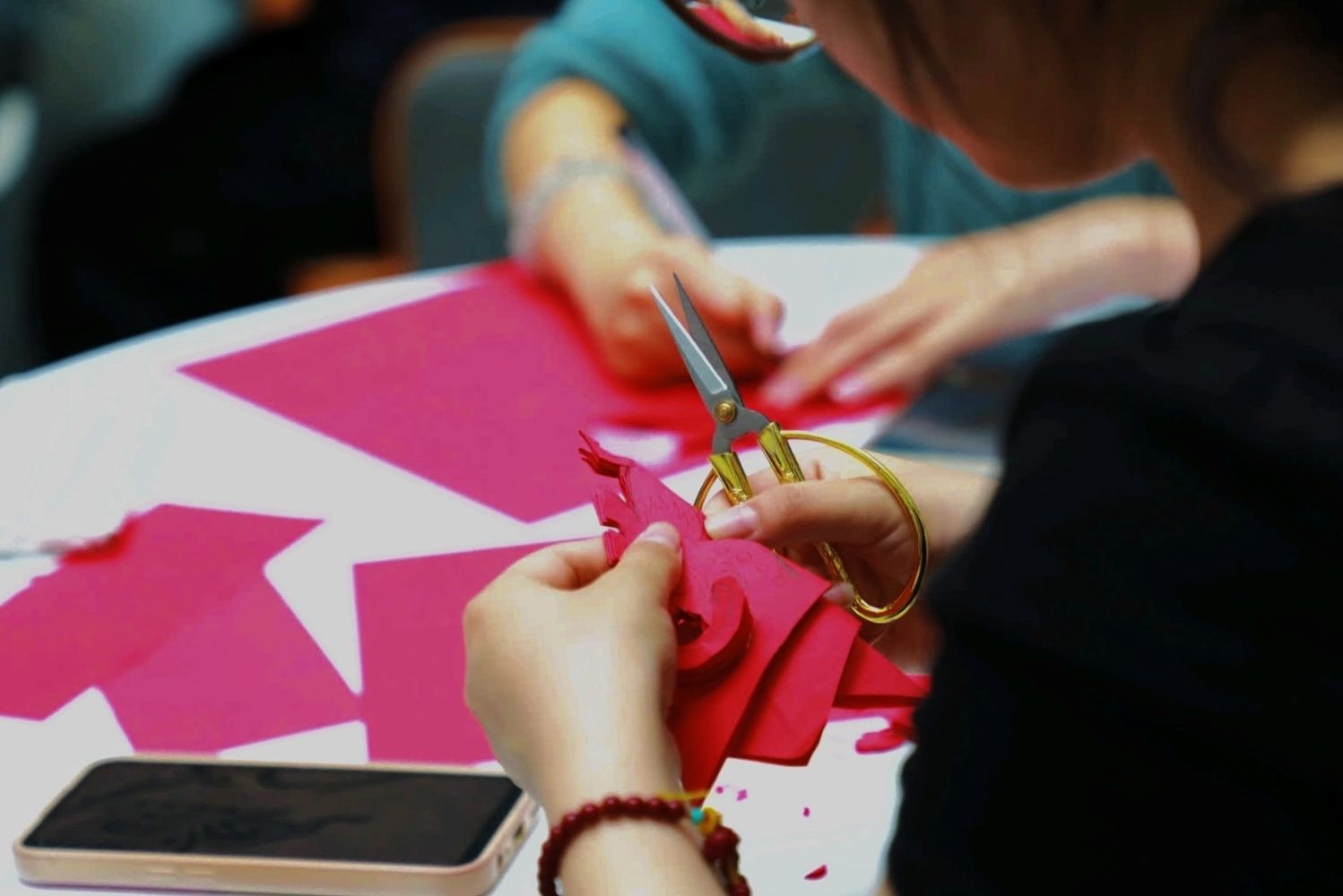 活动现场,主讲人通过生动的讲解,将剪纸艺术的历史渊源、地域流派娓娓道来,并现场演示“一折、二画、三剪”的基础技法,在剪刀与红纸相触的沙沙声中,栩栩如生的花鸟鱼虫瞬间跃然纸上。