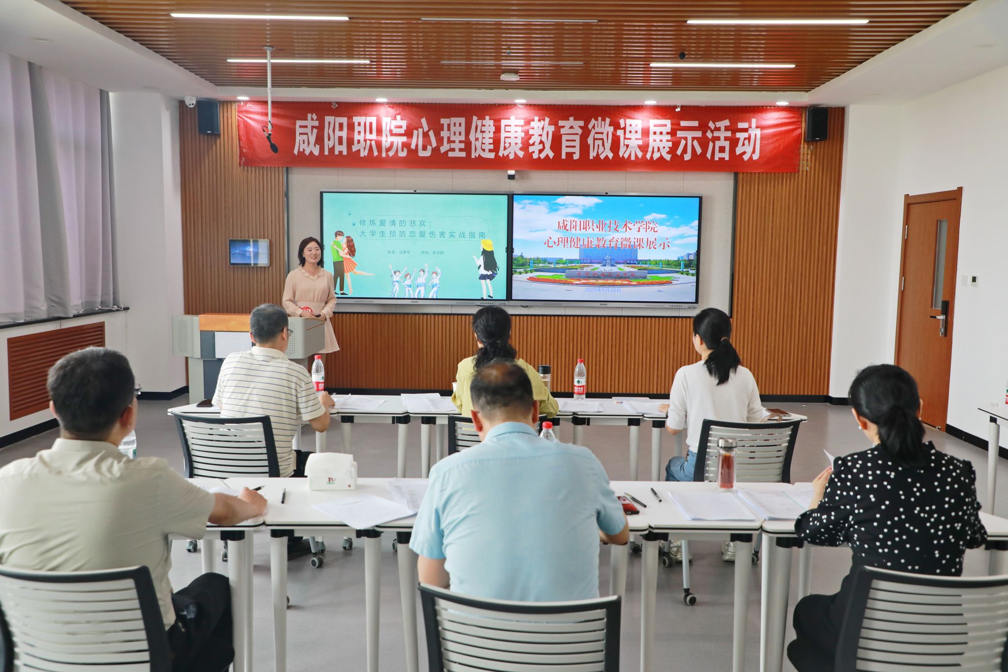 5月15日,咸阳职院举行心理健康教育微课展示活动,学院14名辅导员参与,学院院长杨卫军、副院长吴旭锦现场观摩展示活动。