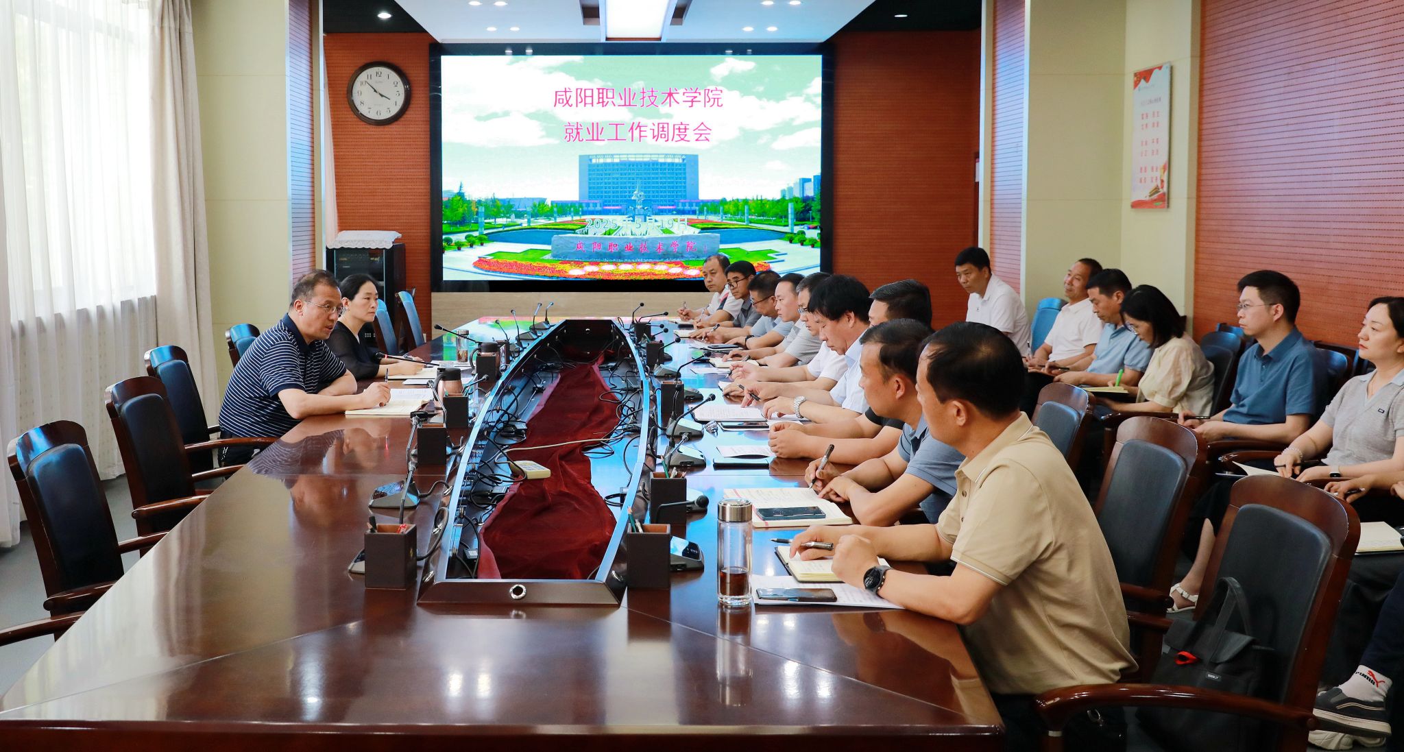 5月19日,咸阳职院召开2025届毕业生就业工作调度会,学院院长杨卫军、副院长吴旭锦,学生处、就业与校企合作处负责人,各二级学院院长、党总支书记及就业与校企合作处全体人员参加会议。会议由副院长吴旭锦主持。