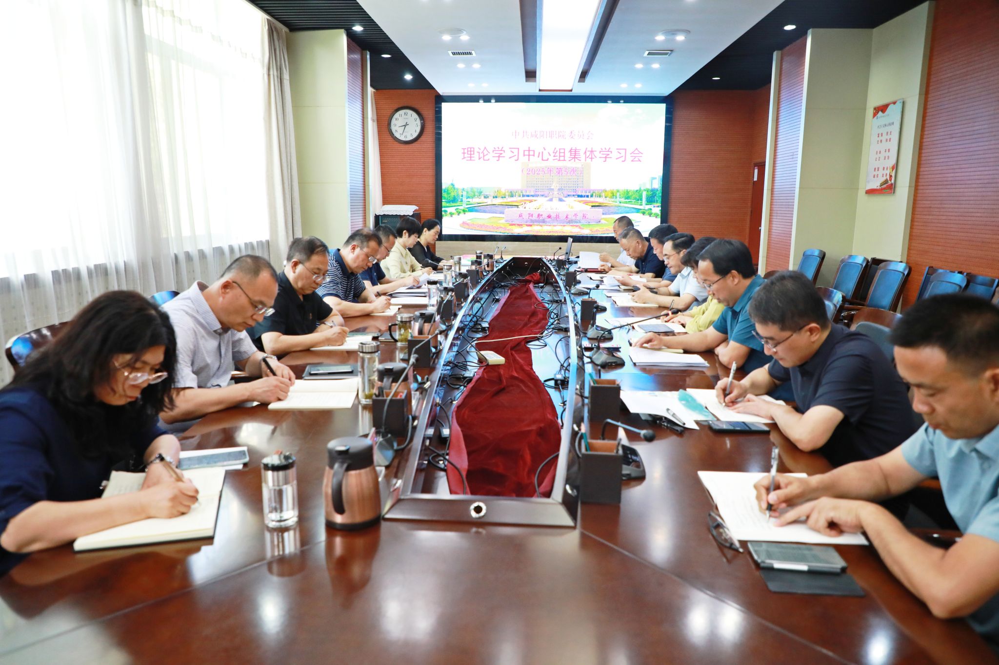 5月20日,咸阳职院党委理论学习中心组召开2025年第5次集体学习会。学院院长杨卫军,党委副书记、工会主席孙彦彬,党委副书记赵维,副院长芮红亚、杨新宇、吴旭锦,纪委书记王宇文和理论学习中心组全体成员参加学习。党委副书记、工会主席孙彦彬主持会议。