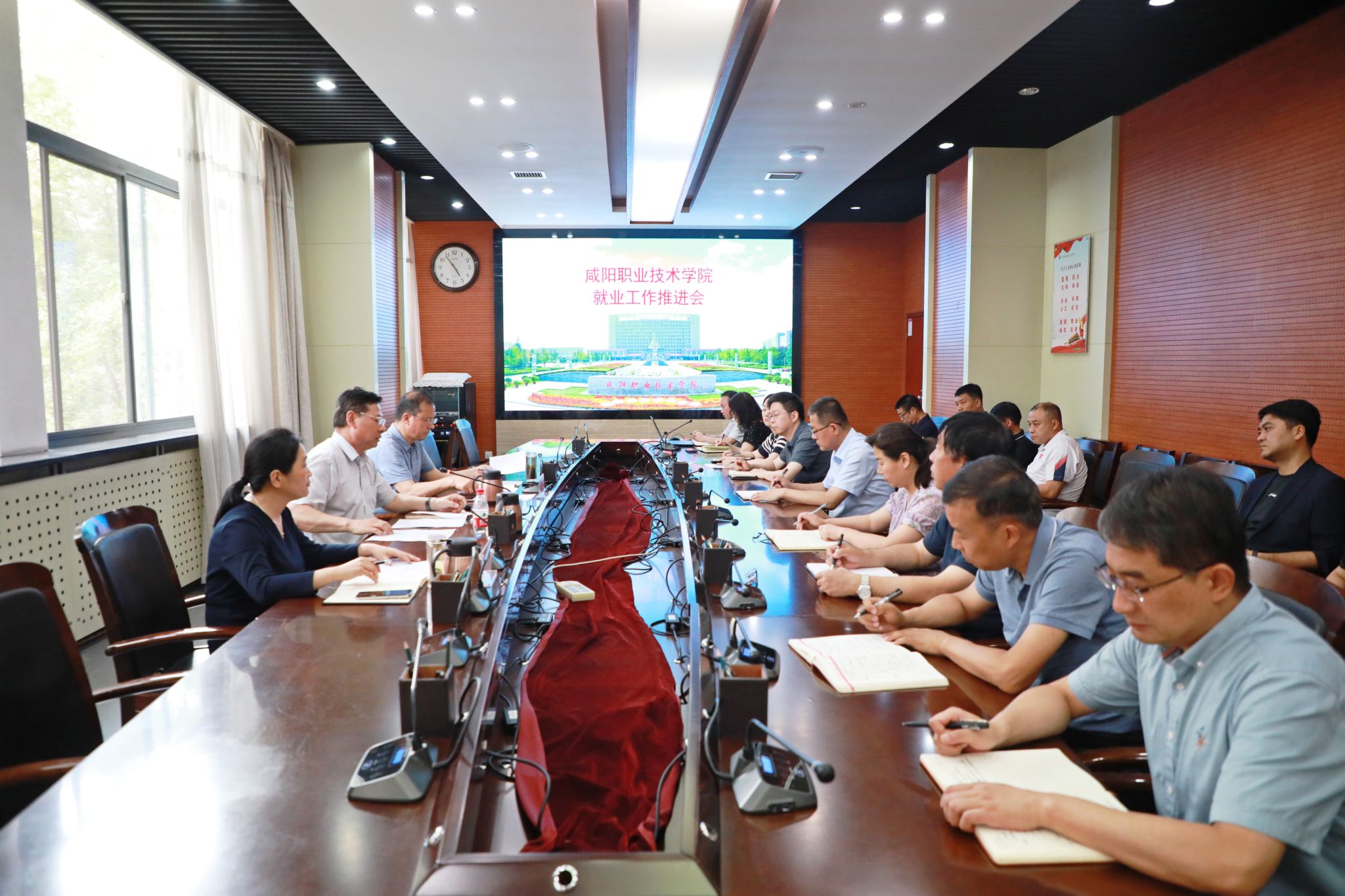 6月3日,咸阳职院召开2025届毕业生就业工作推进会,学院党委书记张迪、院长杨卫军、副院长吴旭锦,学生处、就业与校企合作处负责人,各二级学院院长、党总支书记及就业与校企合作处全体人员参加会议。会议由副院长吴旭锦主持。