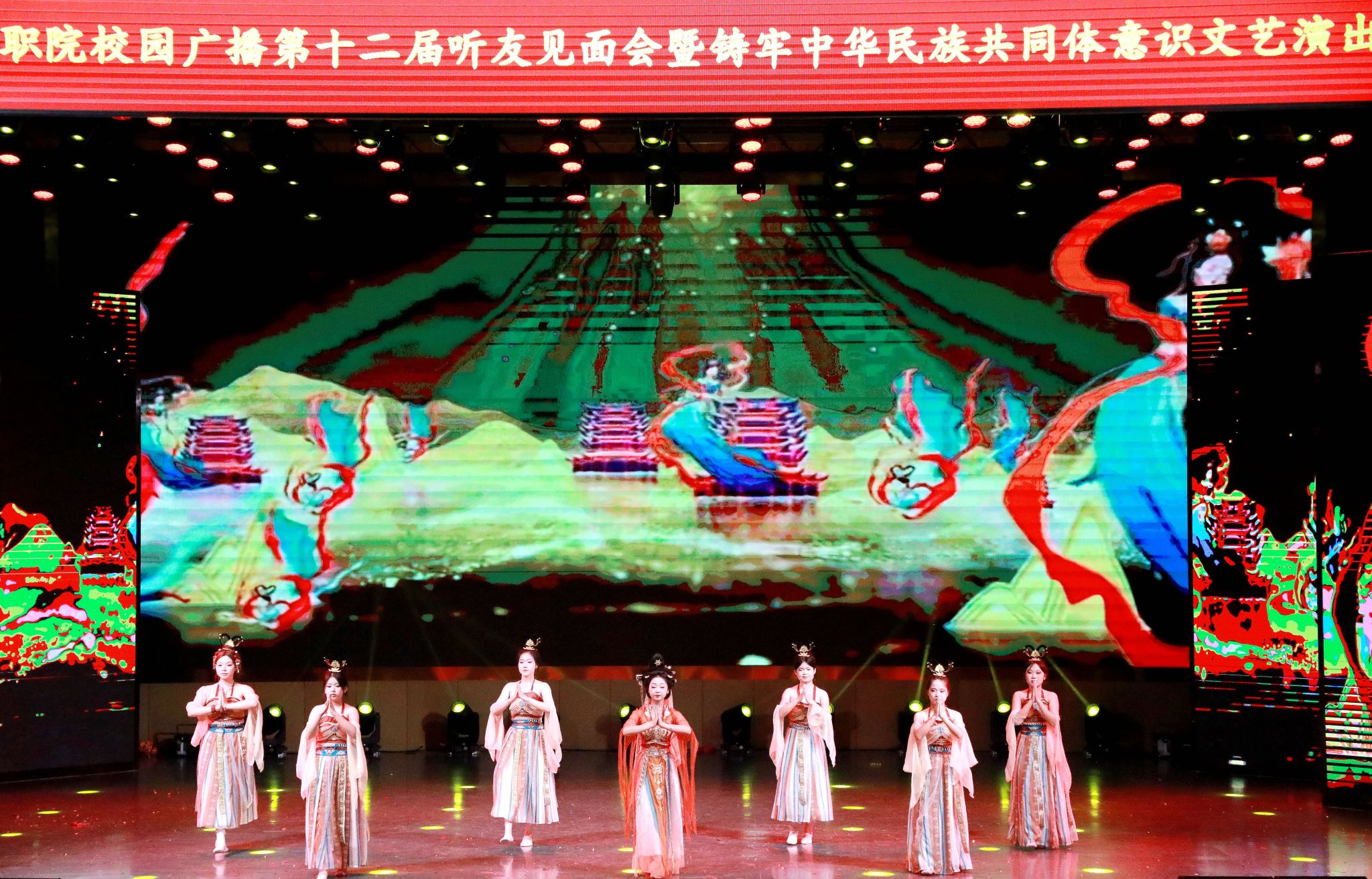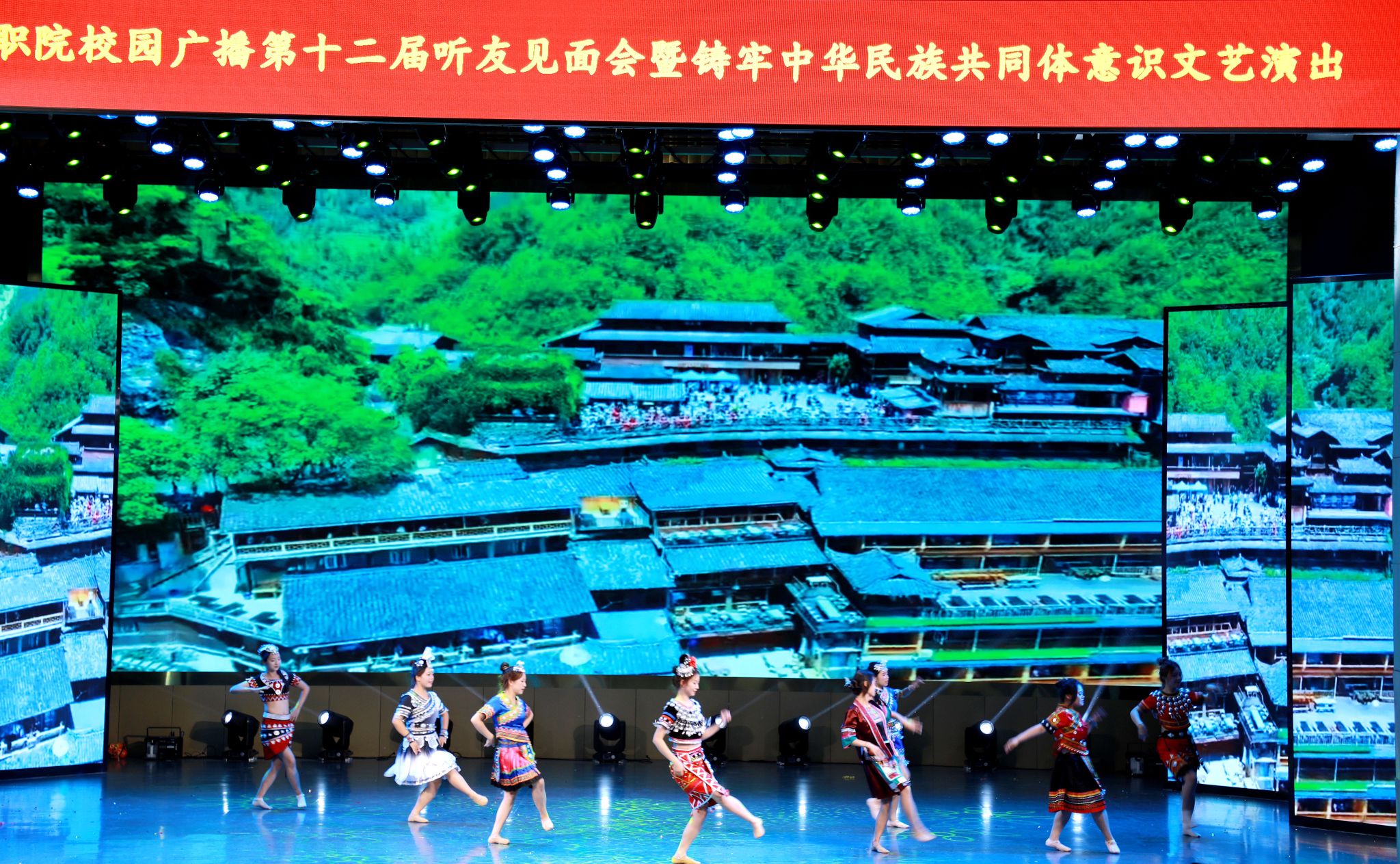 6月12日,咸阳职院校园广播第十二届听友见面会暨铸牢中华民族共同体意识文艺演出在学院大学生活动中心举办。咸阳市委统战部二级调研员孔有军,学院党委副书记、工会主席孙彦彬,纪委书记王宇文,二级学院、处室负责人,各兄弟院校校园广播嘉宾及500余名师生代表欢聚一堂,共赏视听盛宴,唱响民族团结奋进之歌。