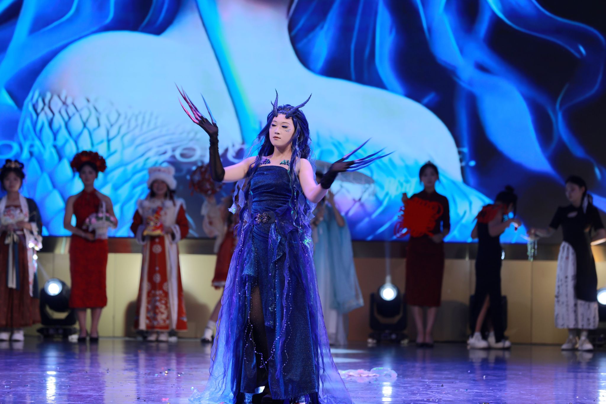 本次活动以“石榴籽同心筑梦 奋进路携手扬帆”为主题,节目编排匠心独具,立意深远。开场舞《九州同》以刚柔并济的编排,展现中华传统武术与舞蹈交融的恢宏气势,深化了“九州共贯、多元一体”的家国情怀。民族舞《笙鼓和鸣奏华章》汇聚白族、苗族、彝族各民族特色,在磅礴气势与婉约轻盈间自如切换,生动诠释了“像石榴籽一样紧紧抱在一起”的民族团结图景。情景剧《红色家书》深情演绎革命先烈字字千钧的家书,呈现出共产党人的坚定信仰与家国大义。舞蹈《向阳而生》以优美的舞姿和鼓舞人心的旋律传递积极向上的能量,鼓励全体师生勇敢逐梦,不畏艰难。相声《我家不在黄土高坡》带来诙谐轻松的陕北风情,洋溢着咸职学子的青春活力与文化自信。朗诵《青春正当时》以青春的活力和无畏,诵出校园广播全体学生对学院广播事业的挚爱。整场演出通过多元艺术形式的交融与升华,将铸牢中华民族共同体意识的主题,深深烙印在每一位师生心中,不仅是一场文艺盛宴,更是一堂生动的思政大课。