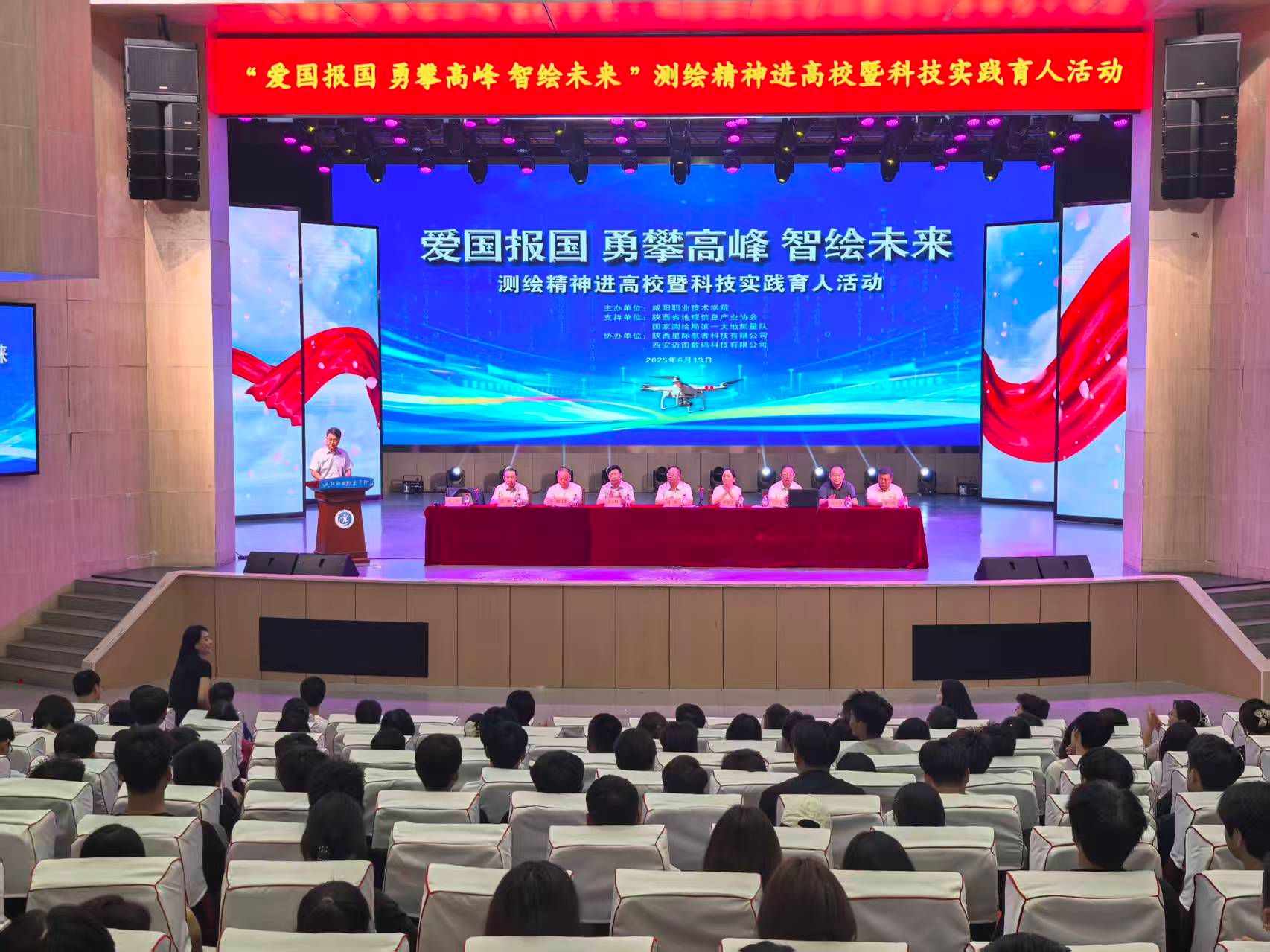 6月19日,咸阳职院“爱国报国勇攀高峰 智绘未来”测绘精神进高校暨科技实践育人活动在学院大学生活动中心举办,学院党委副书记赵维,副院长吴旭锦,陕西省地理信息产业协会副会长潘东峰,国家测绘局第一大地测量队大地测量工程师王宏宇出席,陕西星际航者有限公司、西安迈图数码科技有限公司等企业代表,学院就业与校企合作处、建筑工程学院党政负责人及建筑工程学院全体师近500余人生参加活动。