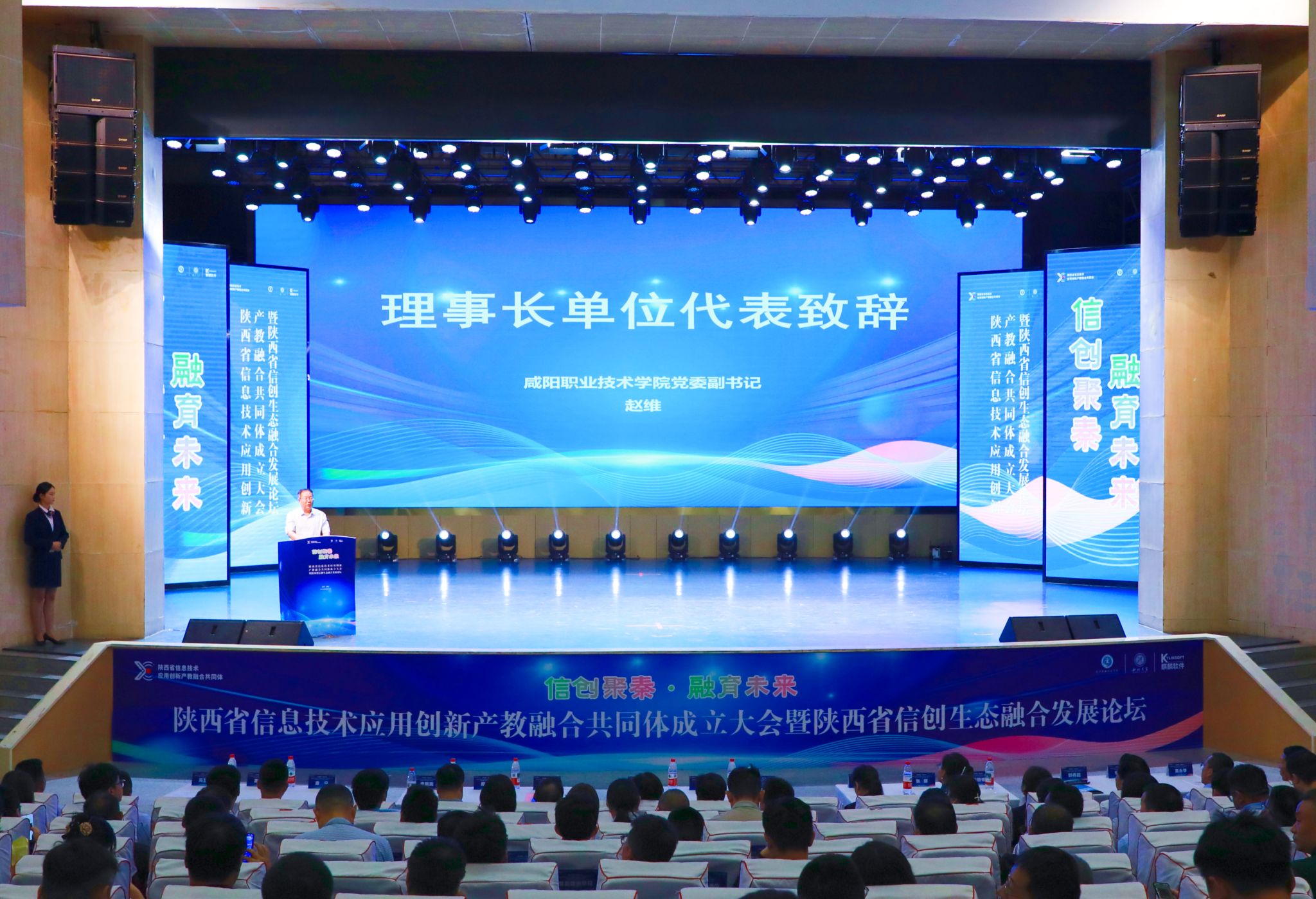 会议共分两个阶段,第一阶段召开陕西省信息技术应用创新产教融合共同体成立大会;第二阶段举行陕西省信创生态融合发展论坛。