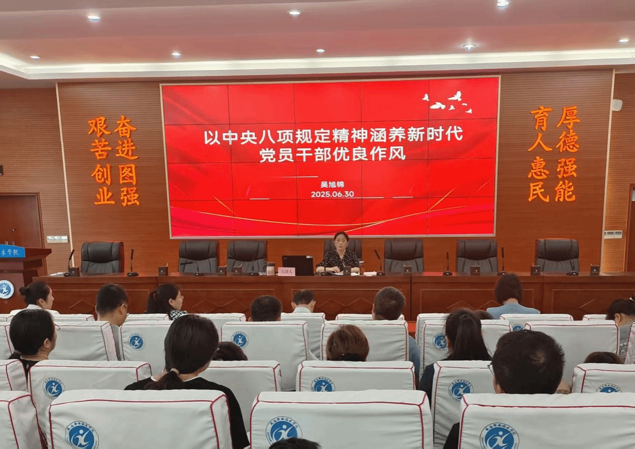 为进一步深入贯彻中央八项规定精神学习教育,强化党员干部的纪律意识和作风建设,6月30日,咸阳职院副院长吴旭锦以“以中央八项规定精神涵养新时代党员干部优良作风”为题,为分管联系部门的全体党员讲授专题党课。