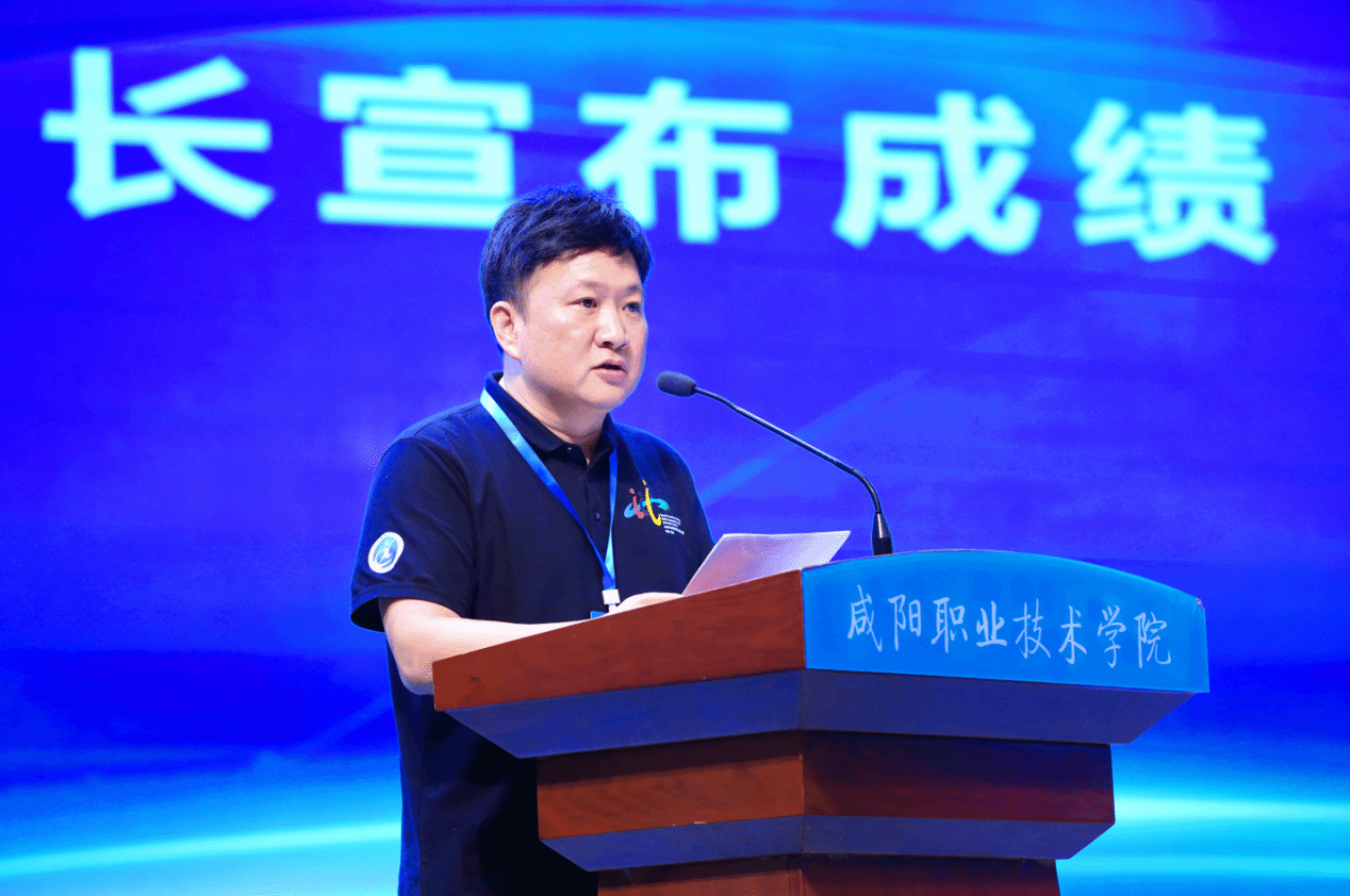 学院院长杨卫军致辞并宣布闭赛。在致辞中代表咸阳职院全体师生向教育部、大赛组委会、执委会、陕西省教育厅、咸阳市委、市政府的大力支持表示衷心感谢。向为大赛付出辛勤努力的全体专家、裁判员、领队、指导老师、工作人员和志愿者致以诚挚慰问。向所有参赛选手展示的良好风貌和取得的优异成绩表示热烈祝贺。