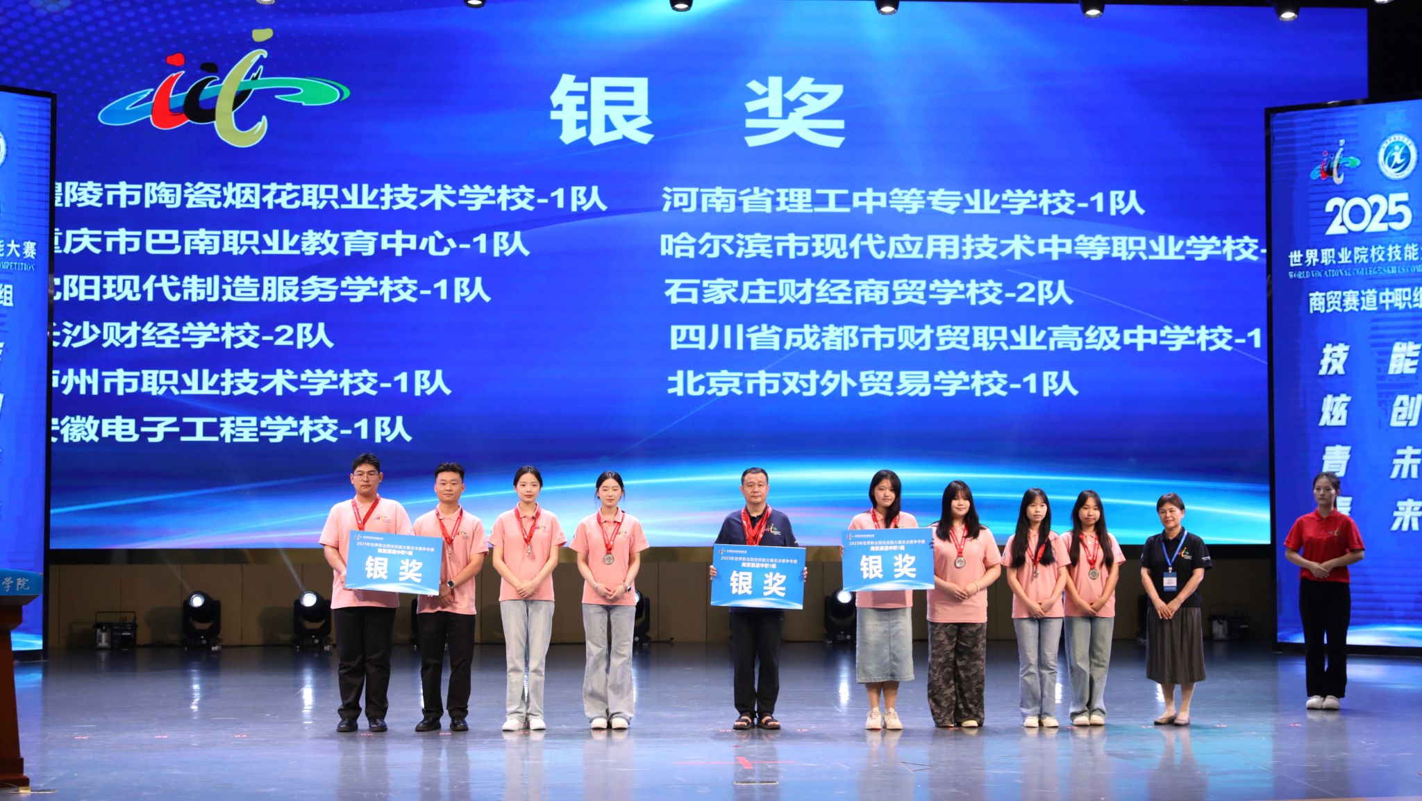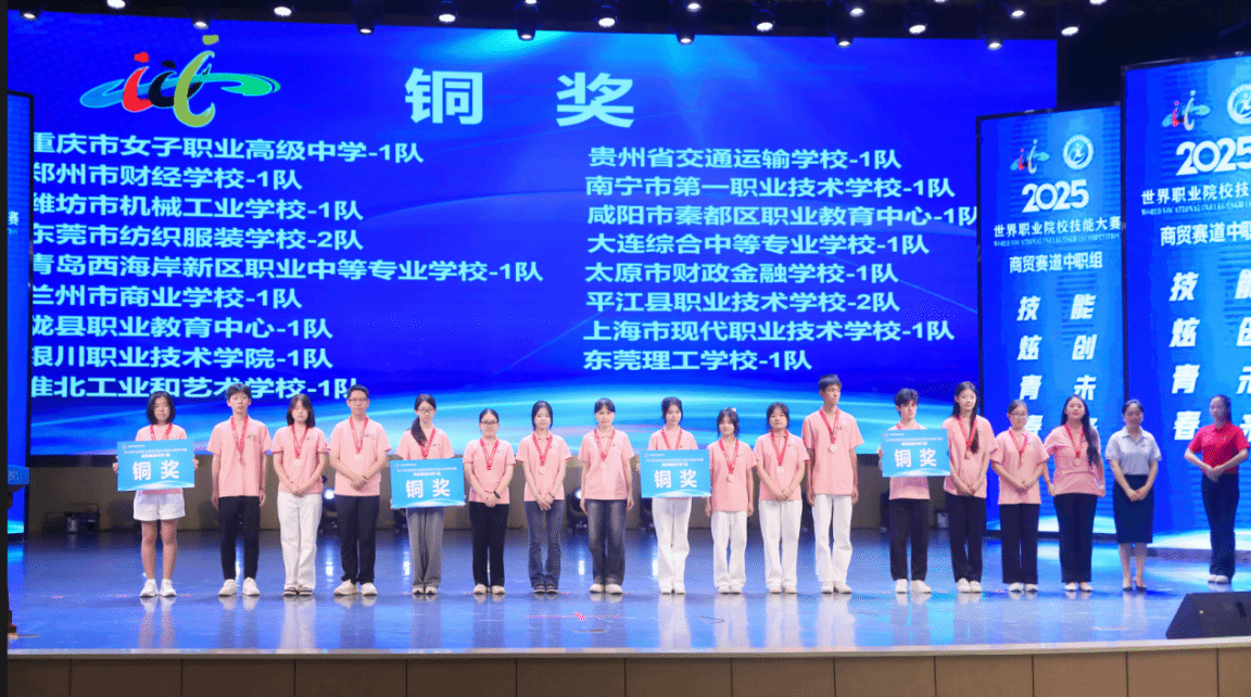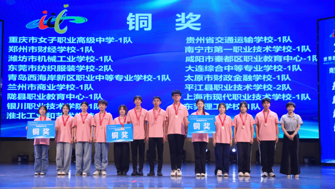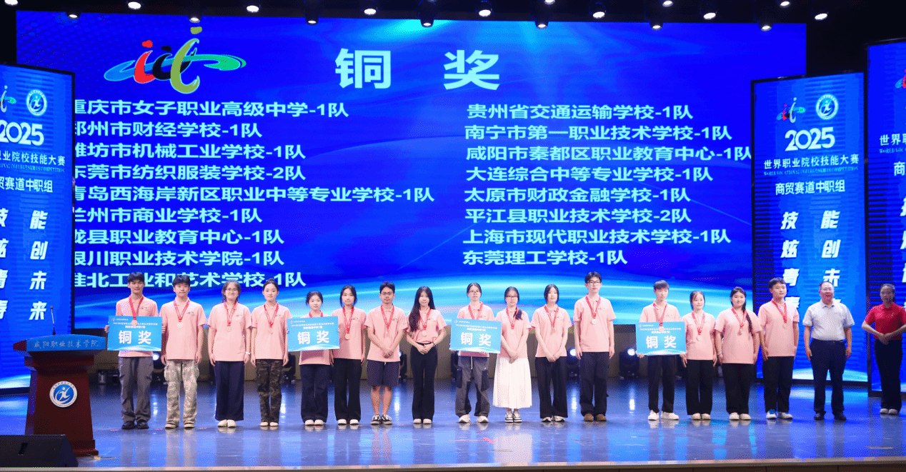 闭赛式上,裁判长宣布了比赛结果。助理裁判长对本次比赛参赛总体情况、赛事亮点与改进方向进行了点评。对本次大赛组织给予高度评价,肯定咸阳职院组织周密、保障尽责,确保了比赛圆满成功。经过评选,吉林经济贸易学校1队、平顶山市财经学校1队、义乌市城镇职业技术学校1队、福建省泉州华侨职业中专学校1队、福州商贸职业中专学校1队、昆山花桥国际商务城中等专业学校1队等6支队伍获金奖,醴陵市陶瓷烟花职业技术学校1队等11支队伍获银奖,重庆市女子职业高级中学1队等17支队伍获铜奖。与会嘉宾和咸阳职院领导为获奖参赛队伍颁奖。