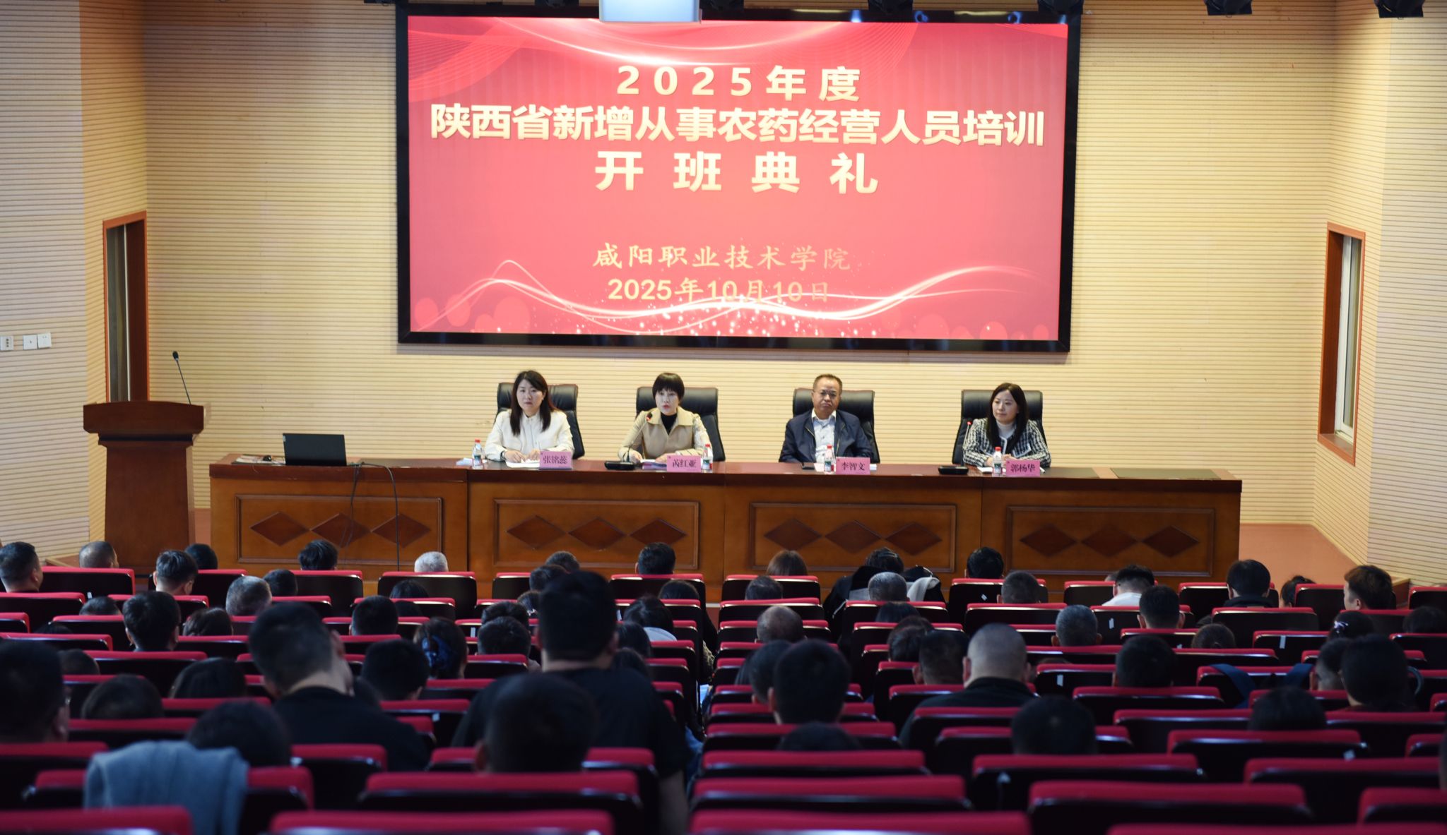 10月10日,由陕西省农业农村厅主办、beat365正版唯一官网承办的2025年度第二期陕西省新增从事农药经营人员培训班在咸阳职院开班。陕西省农业检验检测中心主任李智文,学院副院长芮红亚,继续教育学院负责人、项目管理人员参加开班典礼。