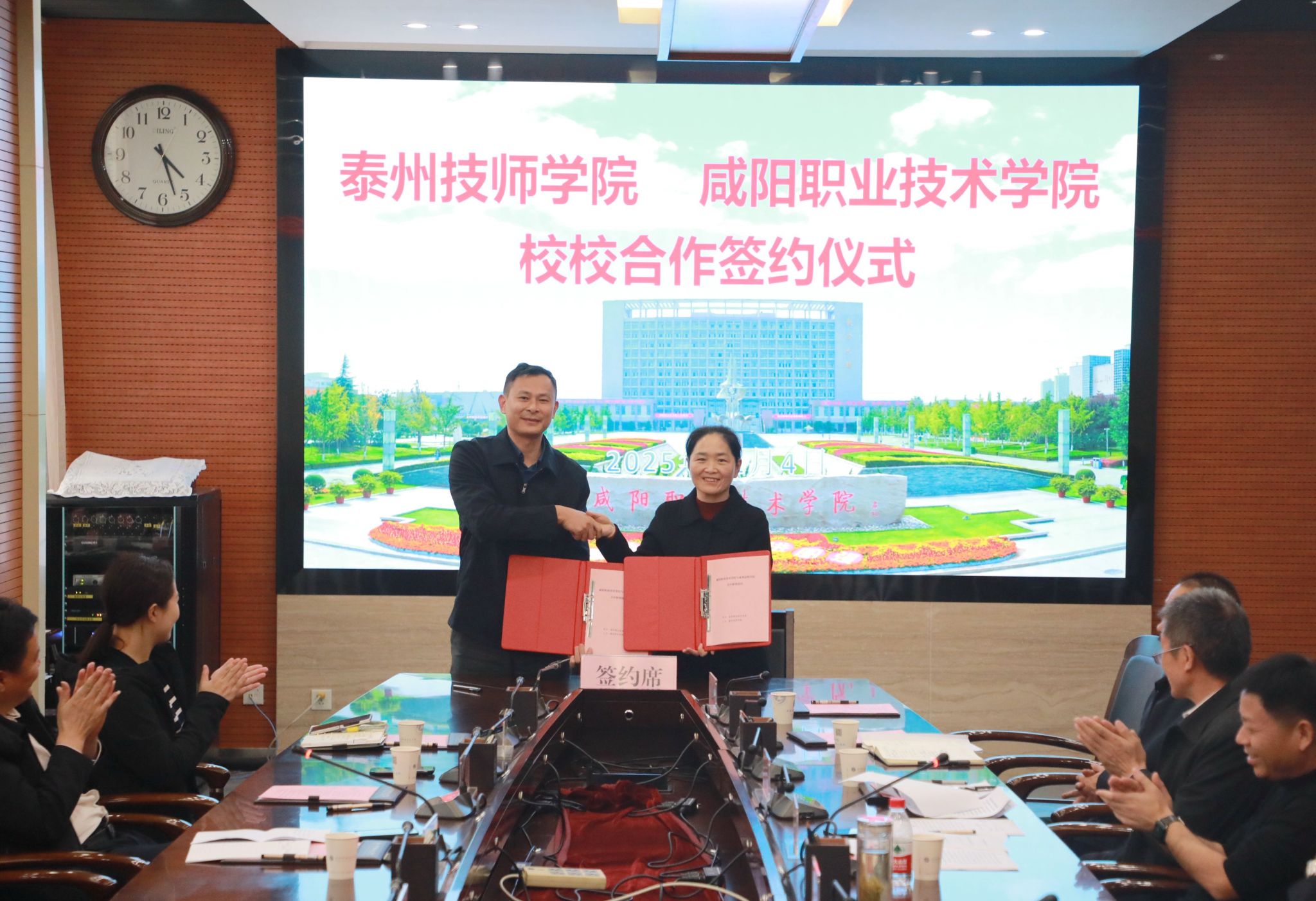 在与会人员的共同见证下,泰州技师学院与咸阳职院签订了校校合作协议,标志着双方合作迈上了新台阶。