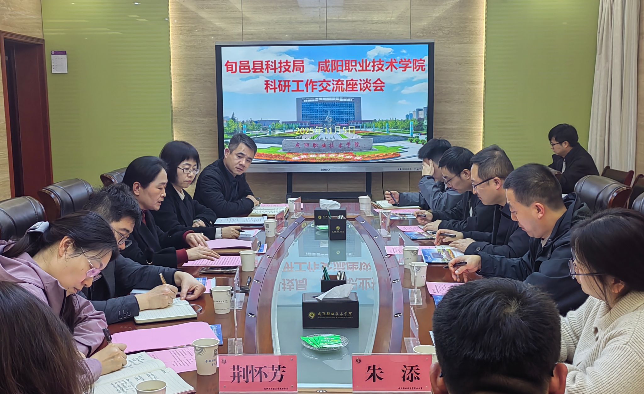 11月5日,旬邑县科技局局长王涛一行5人到咸阳职院开展科研工作交流。咸阳职院副院长吴旭锦,科研处、仪祉农林学院、医学院相关人员参加了会议。