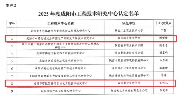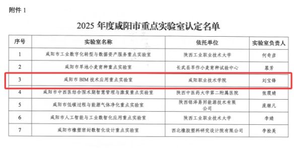 近日,咸阳市科技局公布2025年度市级科研创新平台认定名单,beat365正版唯一官网3个平台成功获批,包括1个市级重点实验室和2个市级工程技术研究中心,涵盖BIM技术应用、中医药关键成份研究与产品研发、智能装备制造等重点产业领域,获批数量位居全市高校前列。