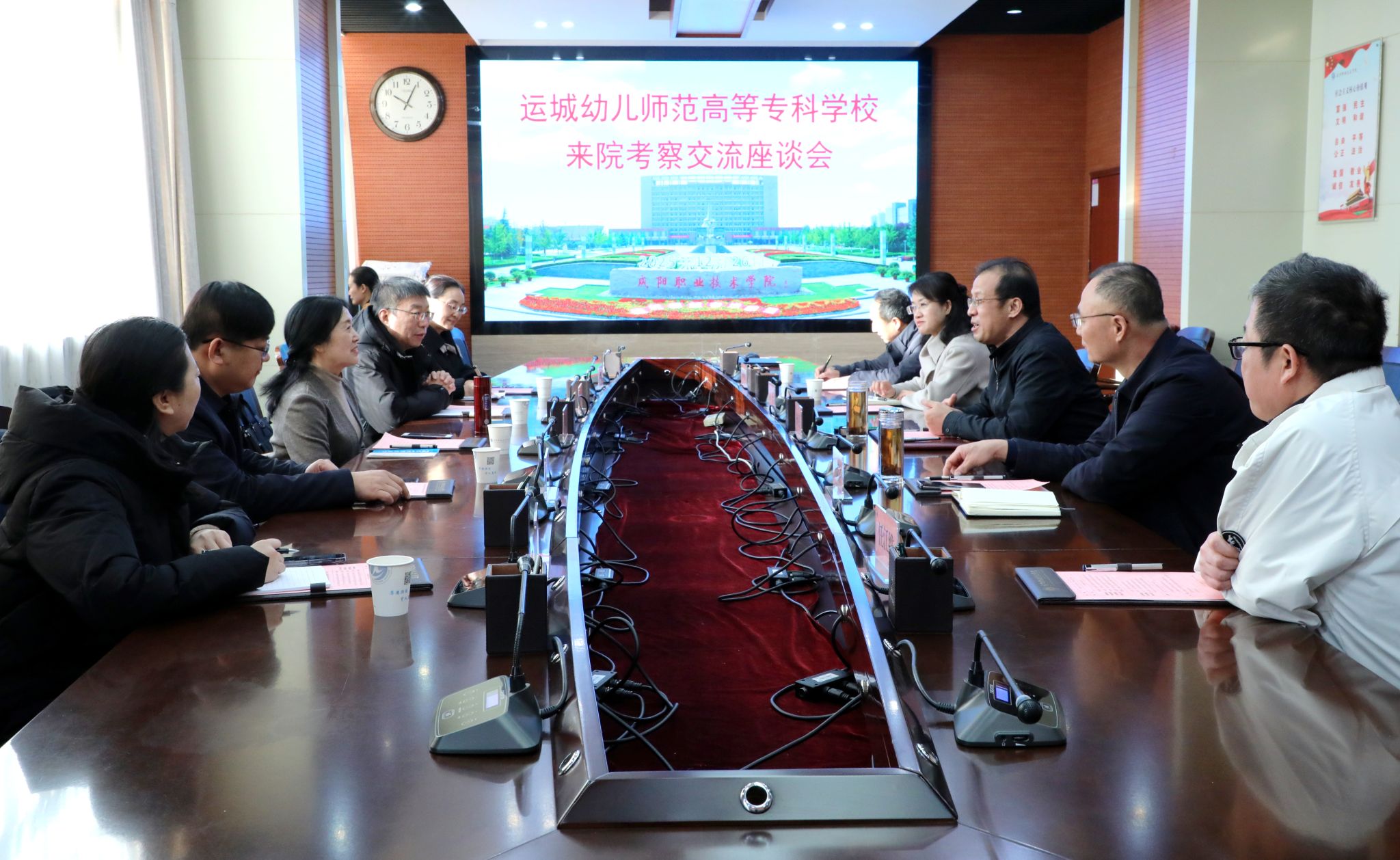 12月26日,运城幼儿师范高等专科学校党委副书记、校长侯娟珍一行5人来beat365正版唯一官网,开展考察交流活动。咸阳职院院长杨卫军、副院长杨新宇,教务处、师范学院主要负责人陪同考察并座谈。