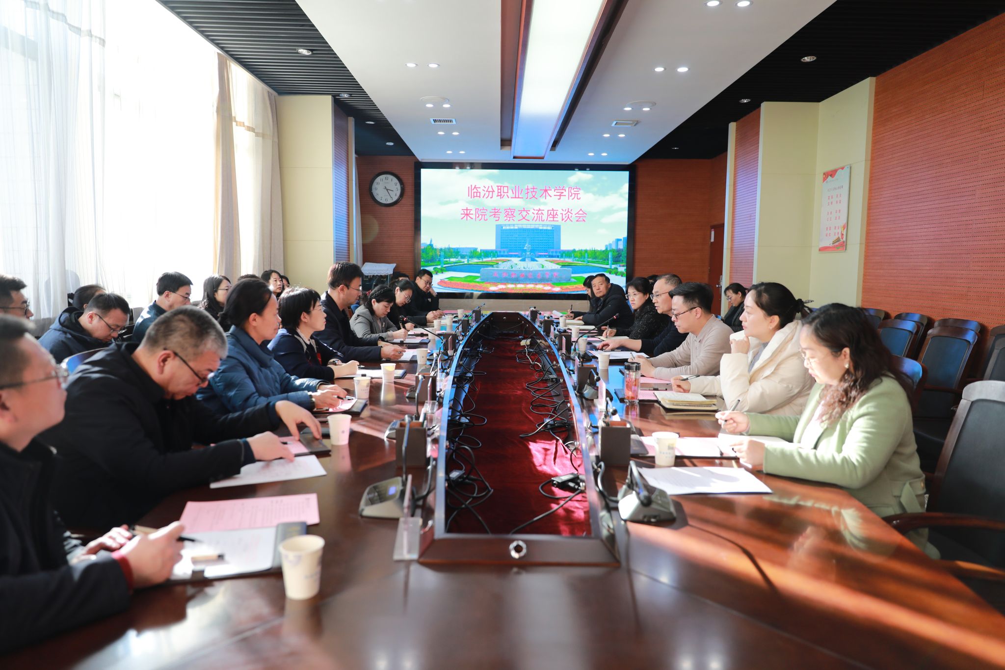 1月6日,临汾职业技术学院党委委员、副院长侯静涛一行19人来咸阳职院考察交流。咸阳职院副院长杨新宇,双高办、教务处、计财处、医学院主要负责人陪同考察并座谈。