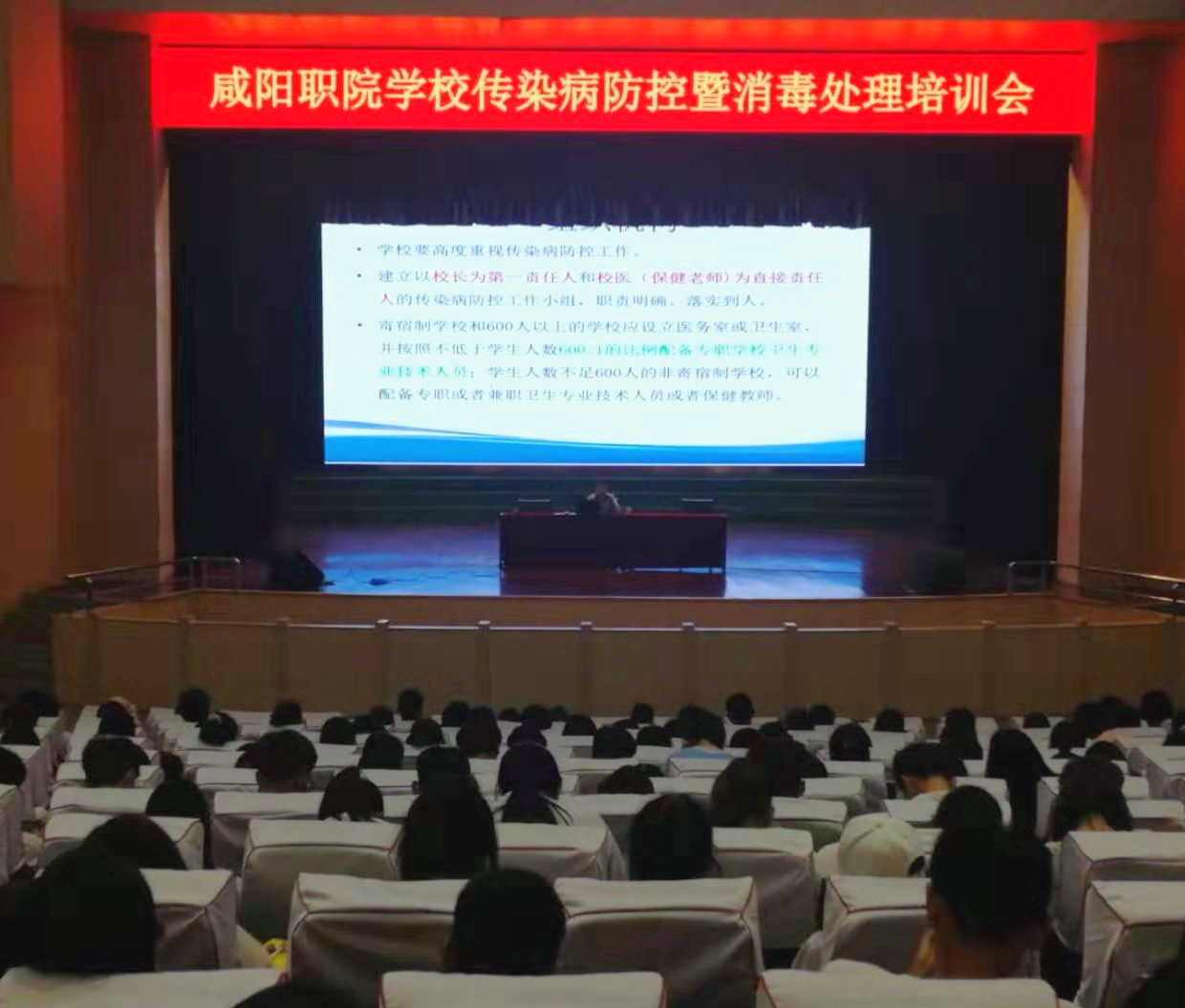 会议邀请了西安市疾控中心传控科副科长李倩、西安市疾控中心消毒科科长付晗。会上就学校常见传染病的防控要求及措施、学校传染病消毒处理方法进行了培训与指导,内容贴合本院实际,语言生动有趣,浅显易懂,对我院传染病防控工作有重要的指导意义。