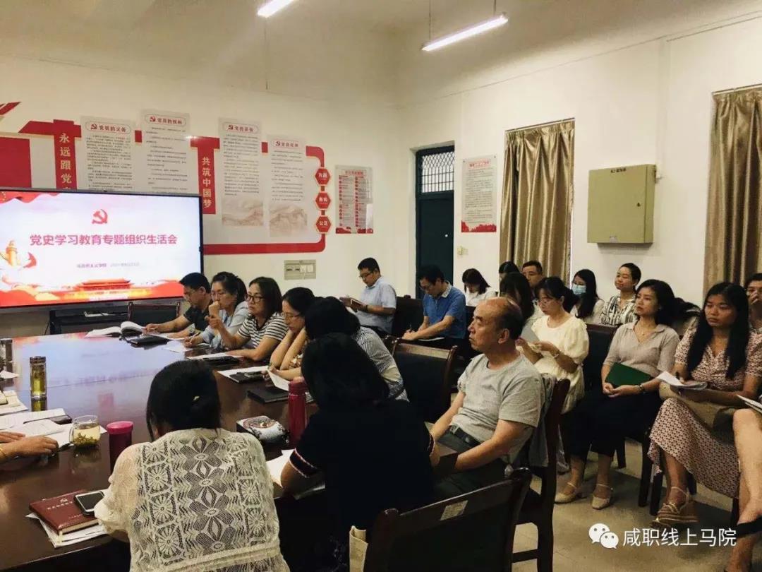 根据学院全面深入推进党史学习教育工作安排,按照《中共咸阳职院委员会办公室关于认真开好党史学习教育专题组织生活会的通知》要求。2021年8月27日,马克思主义学院召开党史学习教育专题组织生活会。党总支书记王小亚,党总支副书记、院长李信,教工党支部书记、副院长蔺建英和全体党员参加会议。会议由教工党支部书记蔺建英主持。