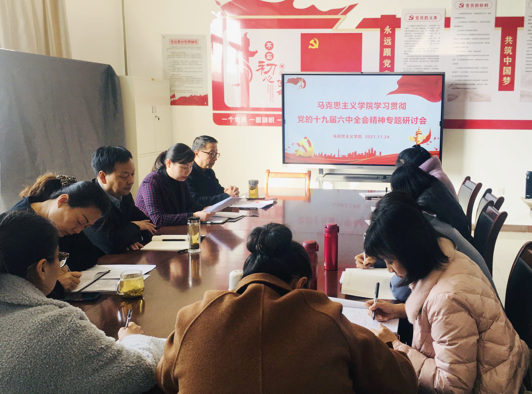 11月24日,马克思主义学院召开学习贯彻党的十九届六中全会精神专题研讨会。学院党委副书记席尚君以普通党员身份参加会议,会议由党总支书记王小亚主持,马克思主义学院全体教职工参加。