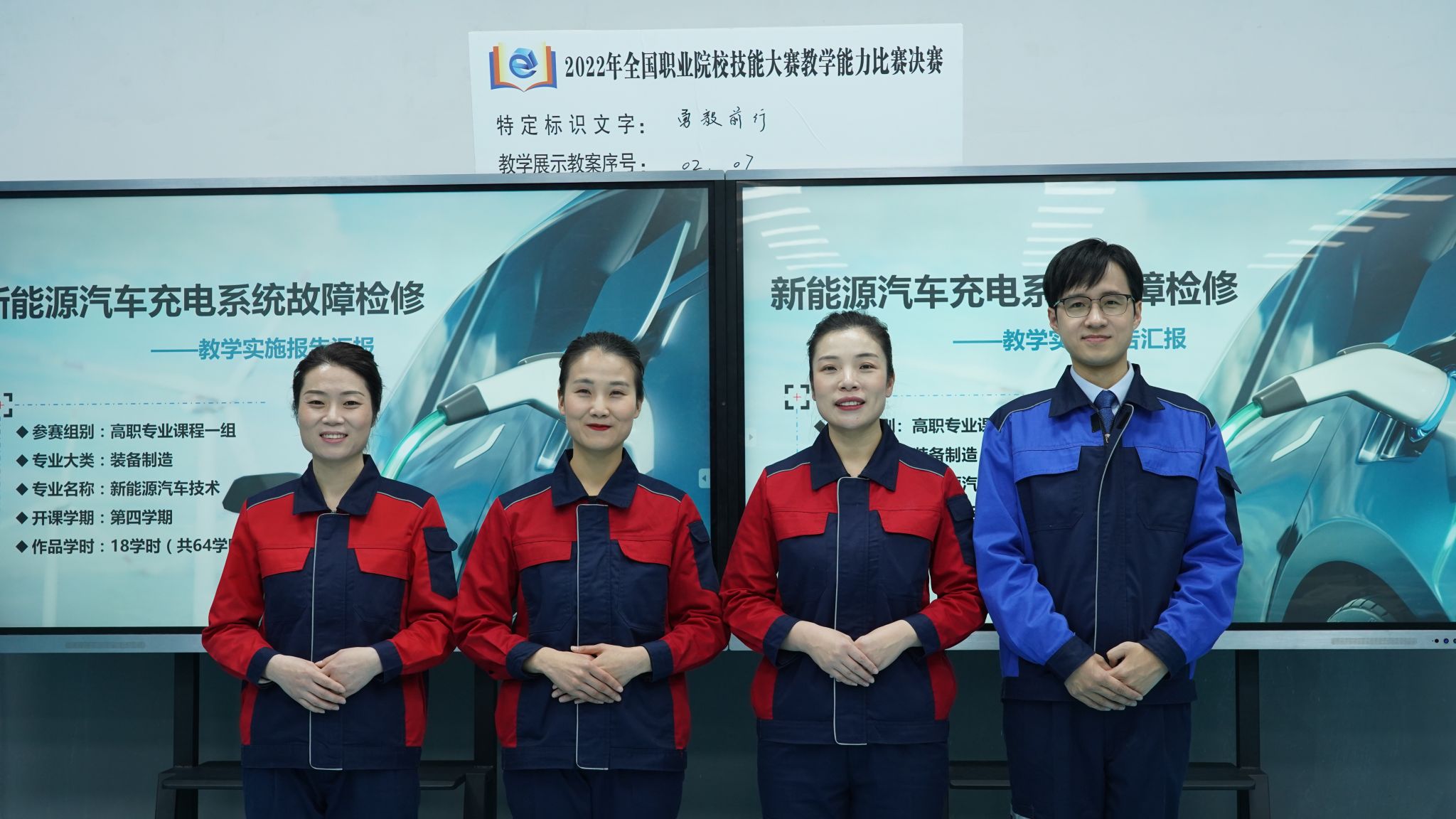 《新能源汽车充电系统故障检修》教学团队在2022年全国职业院校技能大赛教学能力比赛中荣获二等奖。该团队以充电系统故障检修为任务载体,创新采用“三阶四维”教学模式,打造“沉浸式智慧课堂”,培养新业态下新能源汽车服务技术维护技师岗位高素质技术技能人才。团队成员4人,其中副教授1人,讲师3人,硕士4人,双师型教师4人,骨干教师1人。